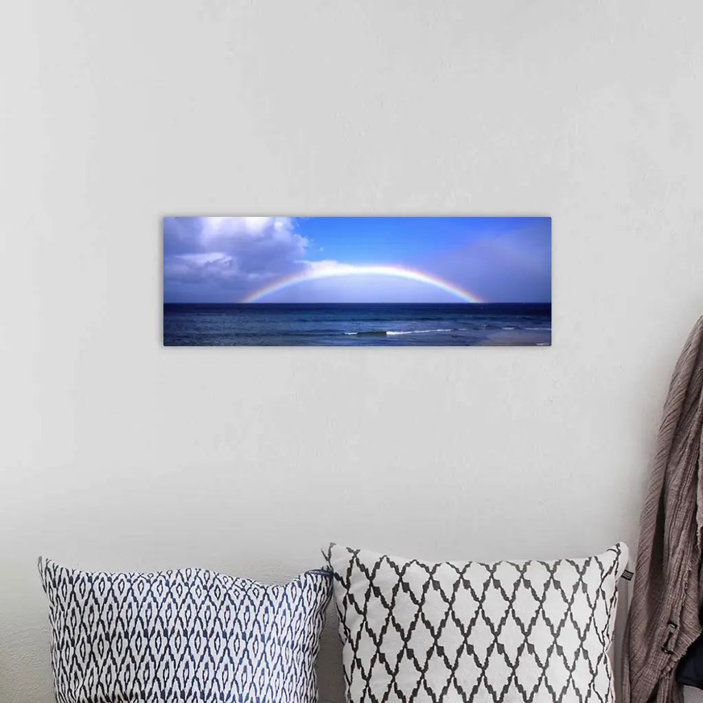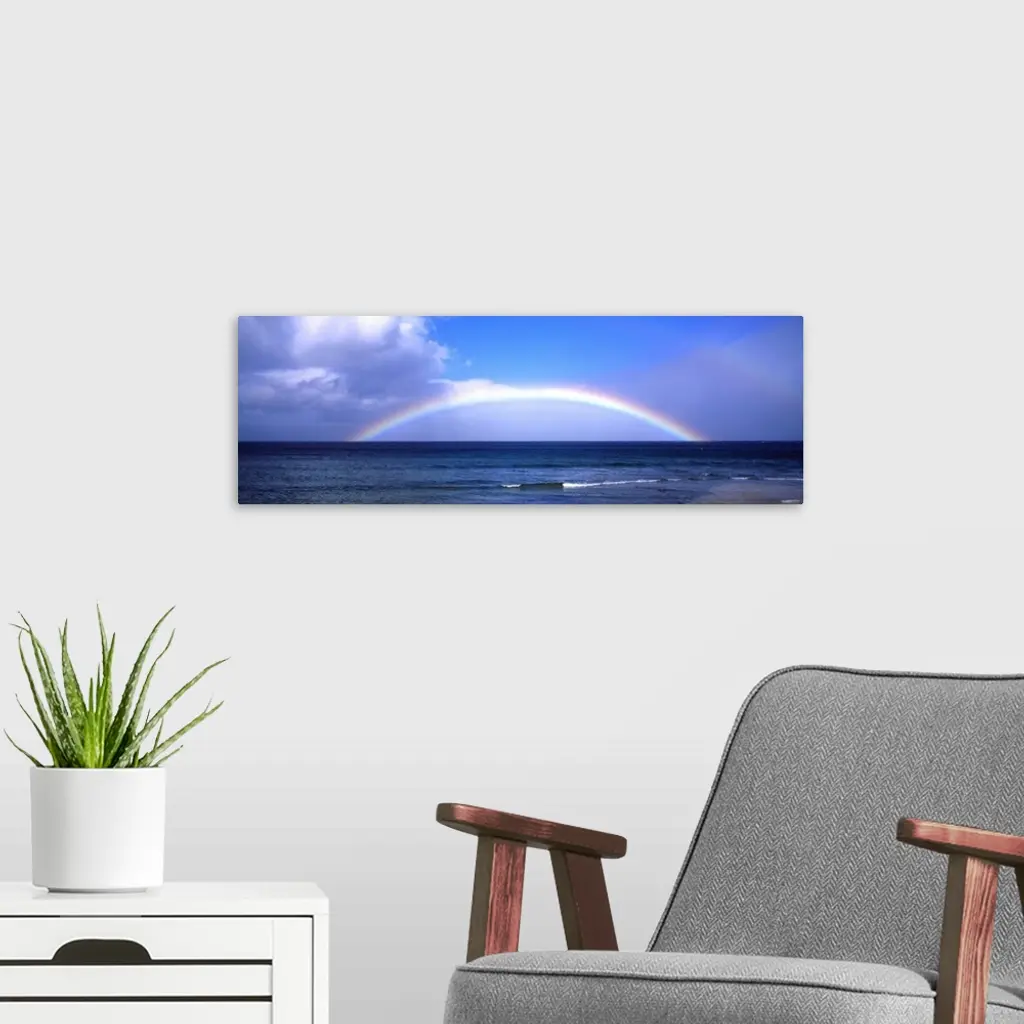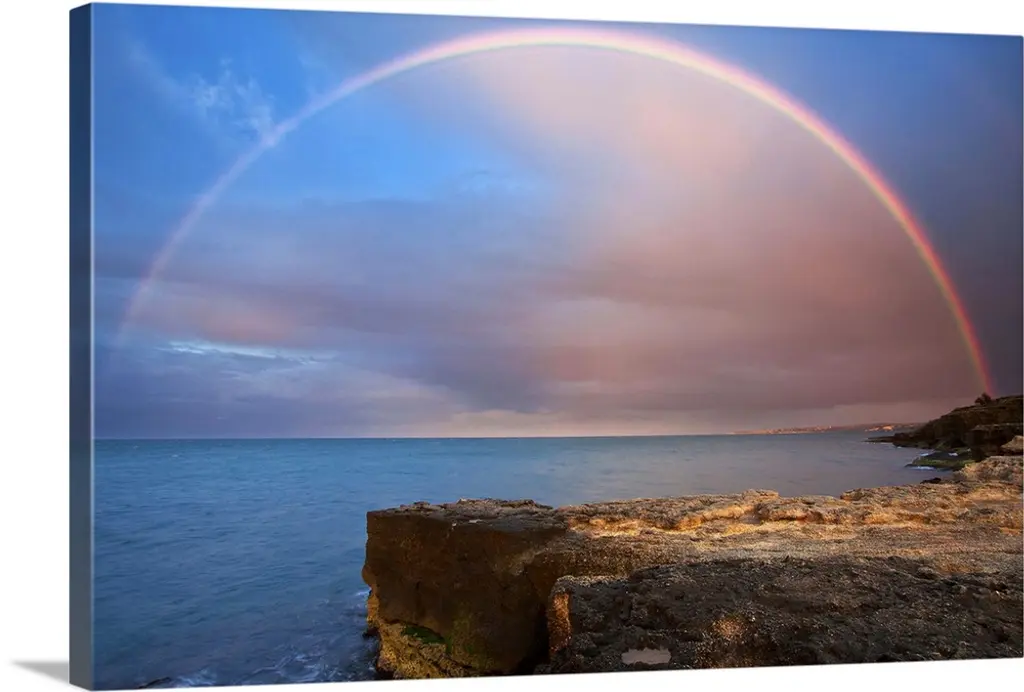 Full Rainbow Over Ocean, Large Clouds Against Blue Sky wall art for home and office decor. Discover canvas art prints, photos, mural, big canvas art and framed wall art in GreatBigCanvas.com's varied collections.