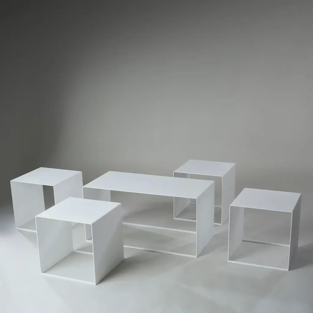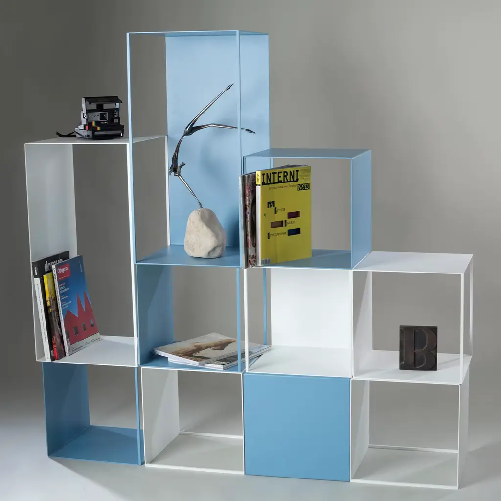 Let your creativity run wild and accessorize your industrial-inspired living room or office. This modular unit from the Fun House Collection is crafted of rolled iron sheets, hand-welded in a parallelepiped shape with three closed and three open sides with a white powder-coated lacquered finish. The minimalist, geometric shape is functional to its high versatility as each unit is equipped with small magnets that allow infinite combinations together with other Cube Modular Units. Available also in black or natural finish with a beeswax protective coating. Please contact the Concierge for additional details.