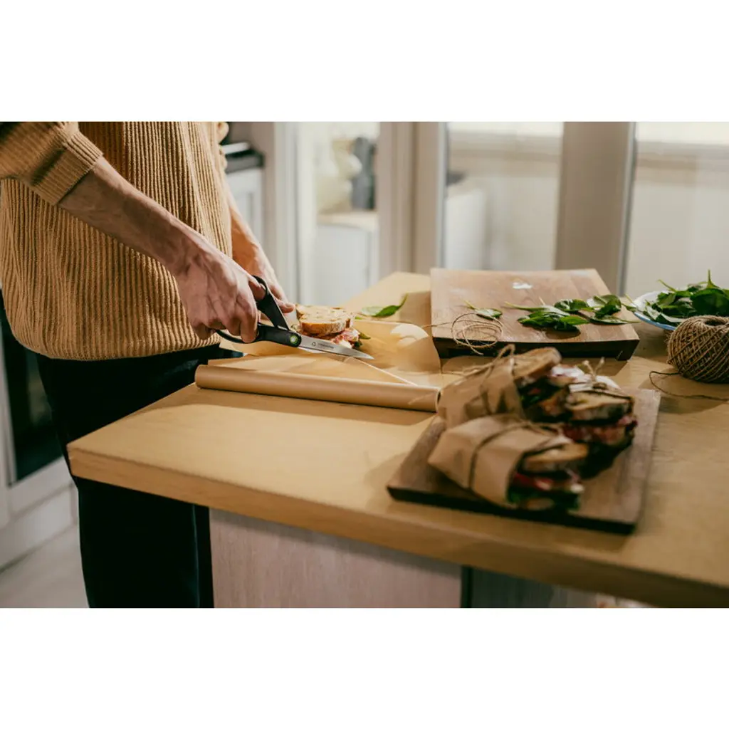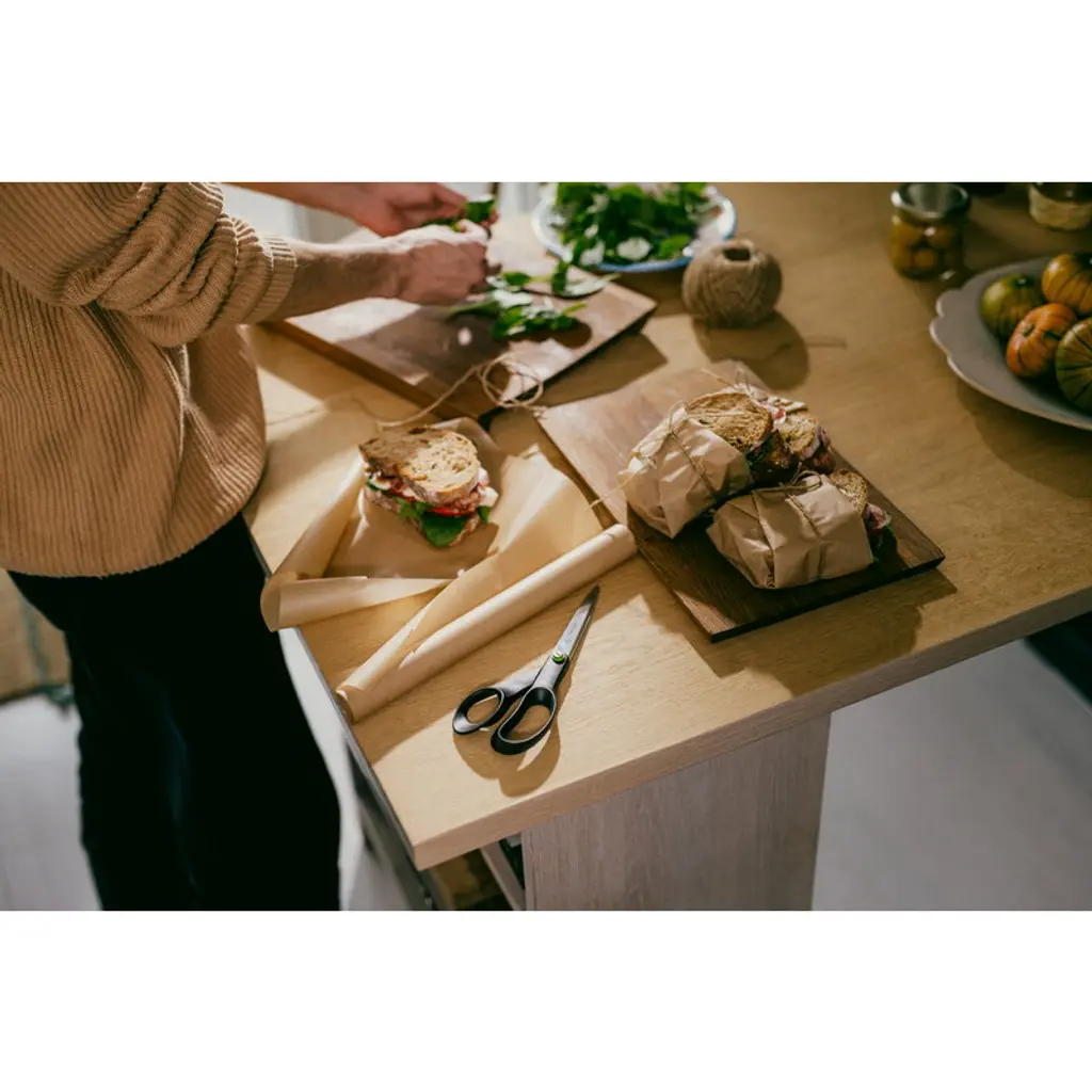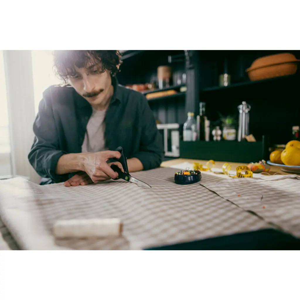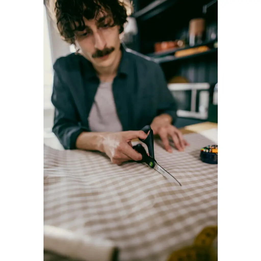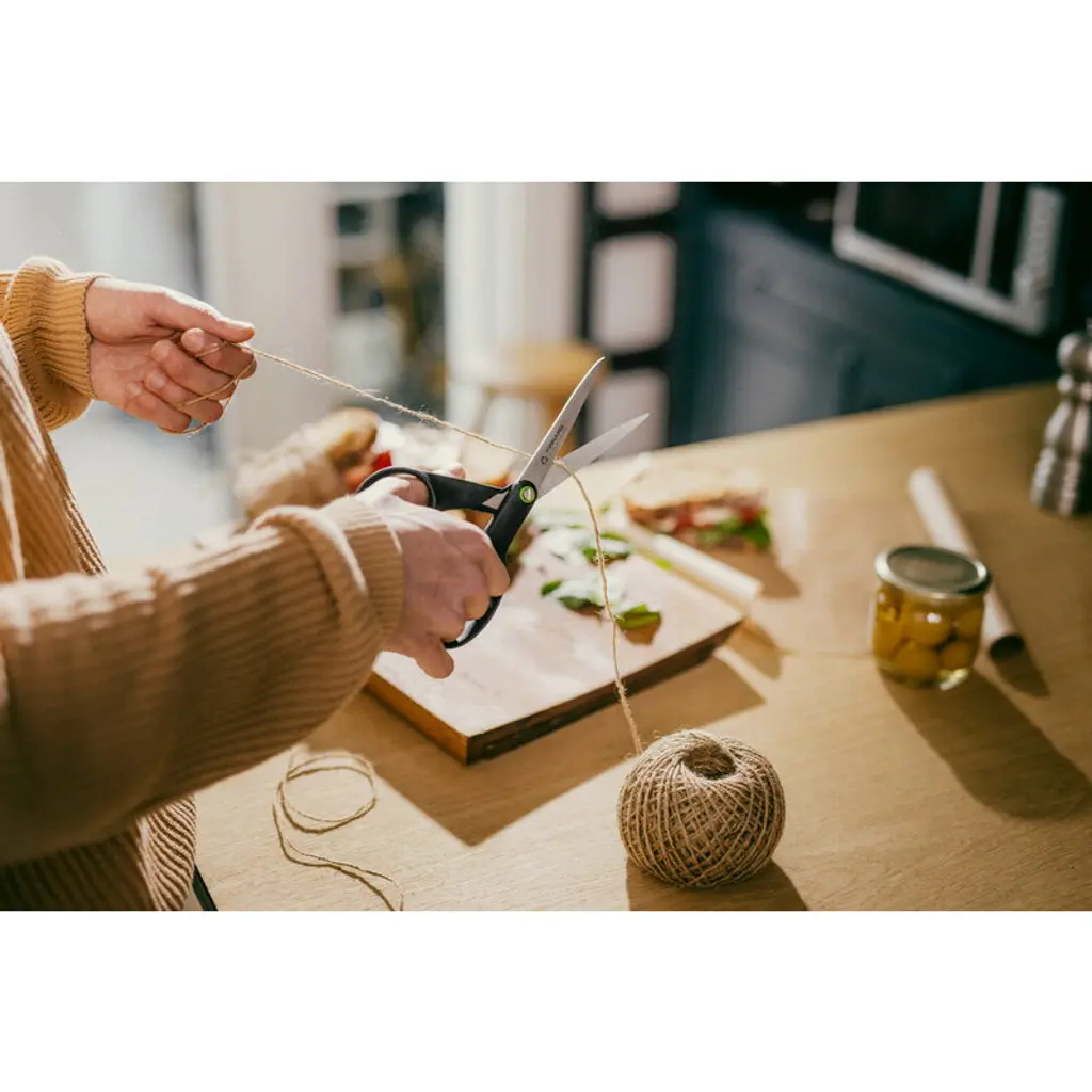 The Fiskars ReNew universal scissors are well-suited for various cutting tasks at home. The right-handed scissors feature durable, precision-ground blades that stay sharp longer and an ergonomically contoured handle that ensures a firm, comfortable grip. The Fiskars ReNew scissors are made from recycled and recyclable materials: the blades from recycled stainless steel and the handles from biocomposite material made up of recycled plastic and renewable cellulose fiber. The ReNew scissors are manufactured sustainably in Finland, and their quality, comfort and performance are ensured by testing each individual pair of scissors by hand.