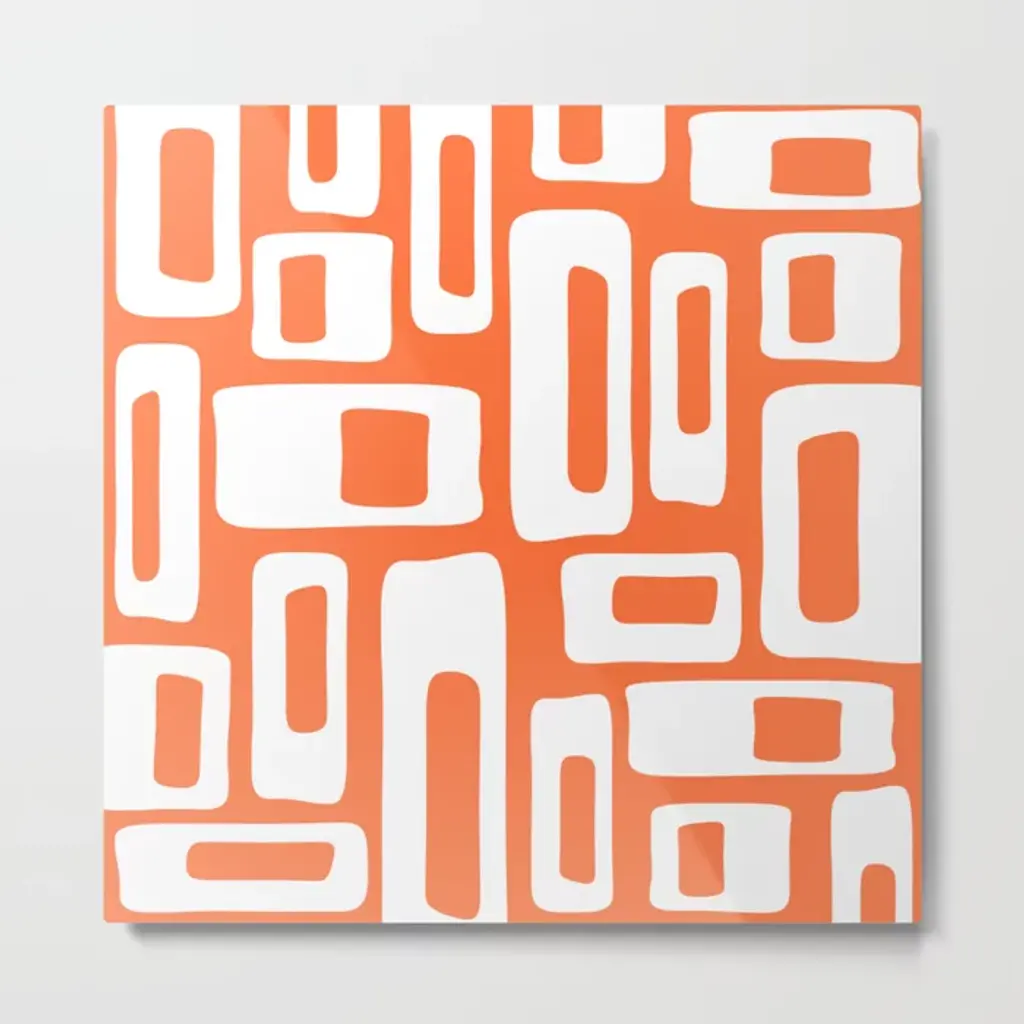 Funky Mid Century Modern Pattern 694 Orange And Gray Metal Print