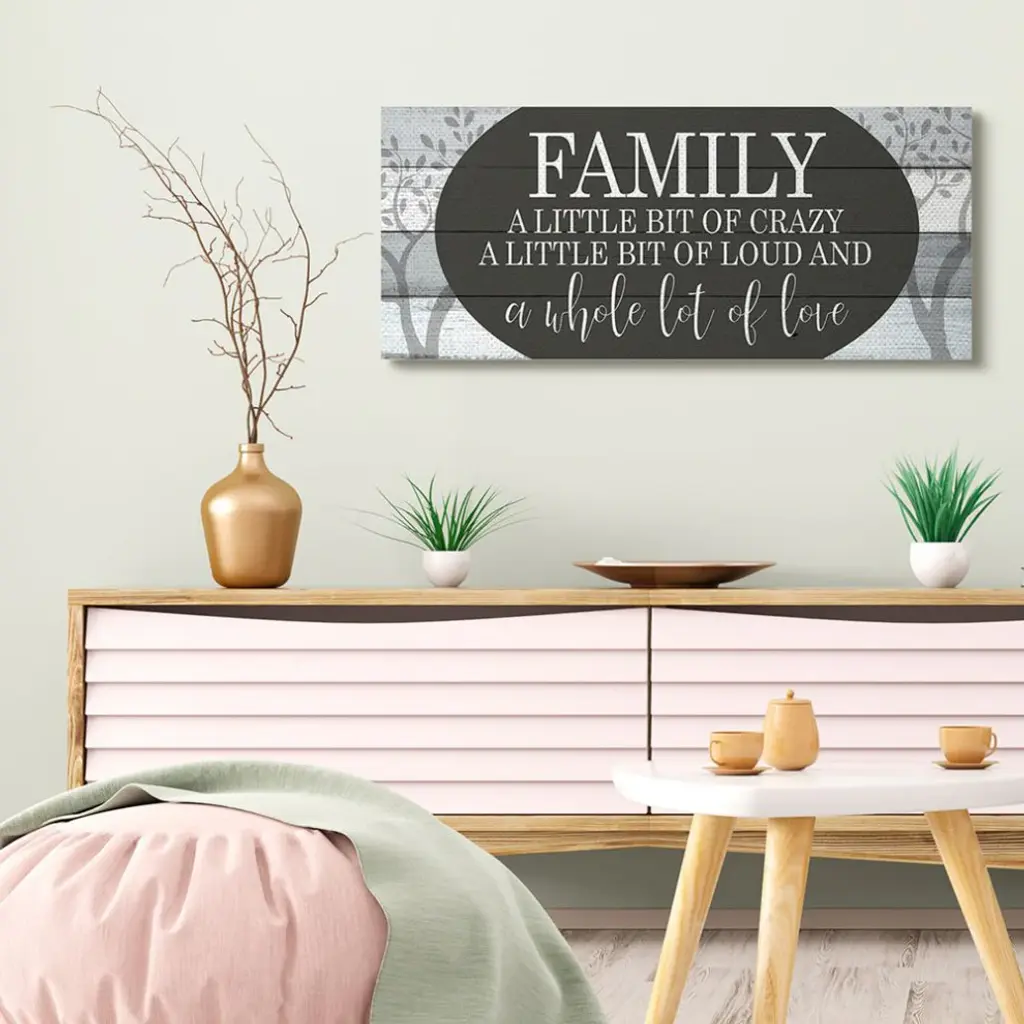 Funny Loud Crazy Family Phrase Black White Home Text,1pc, Each 17 X 40