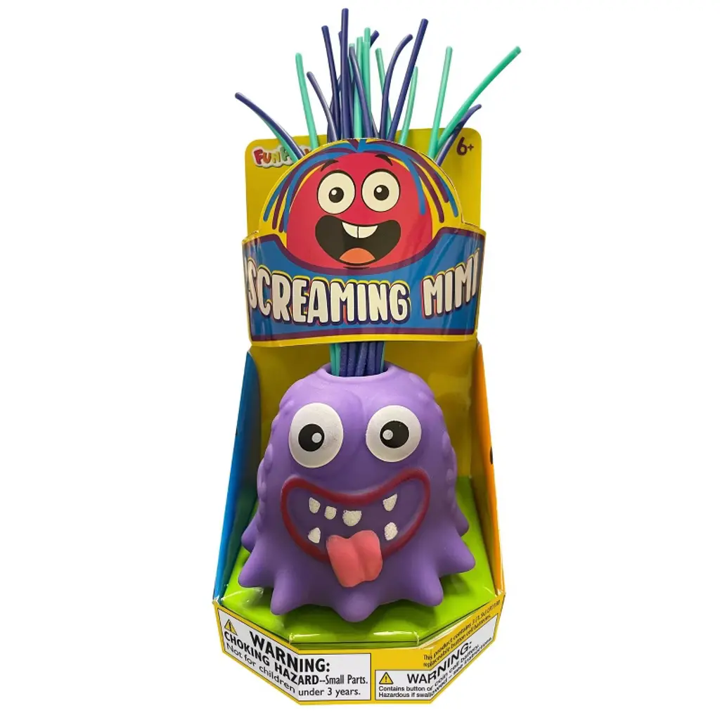 Brace yourself for total mayhem! FunPlay’s Screaming Mimi is a wacky, wild-haired toy that lets loose with hilarious sounds when you pull its hair! Tug on the colorful hair strings and watch the chaos unfold while you listen to some silly sound surprises. Whether this is your loudest new friend or your funniest prank sidekick, Screaming Mimi is here to make noise, crack you up and steal the show! Batteries included for instant fun.