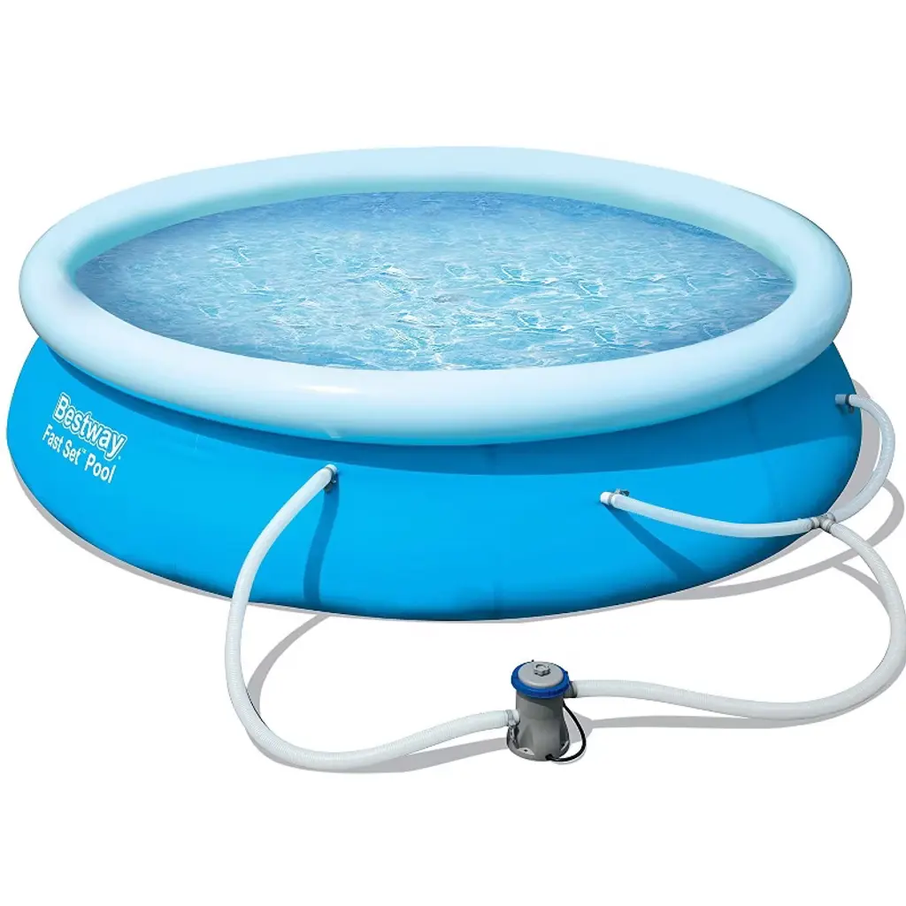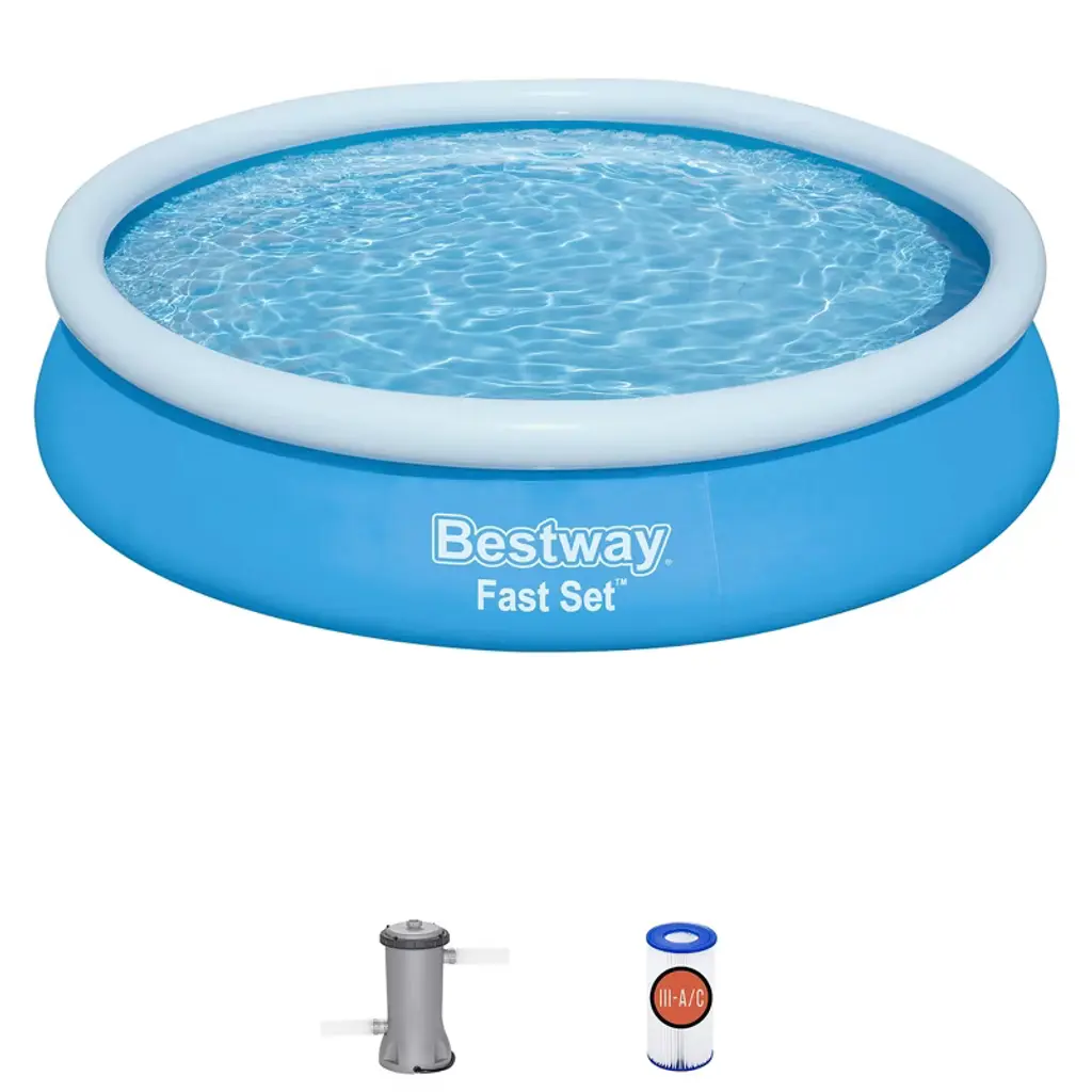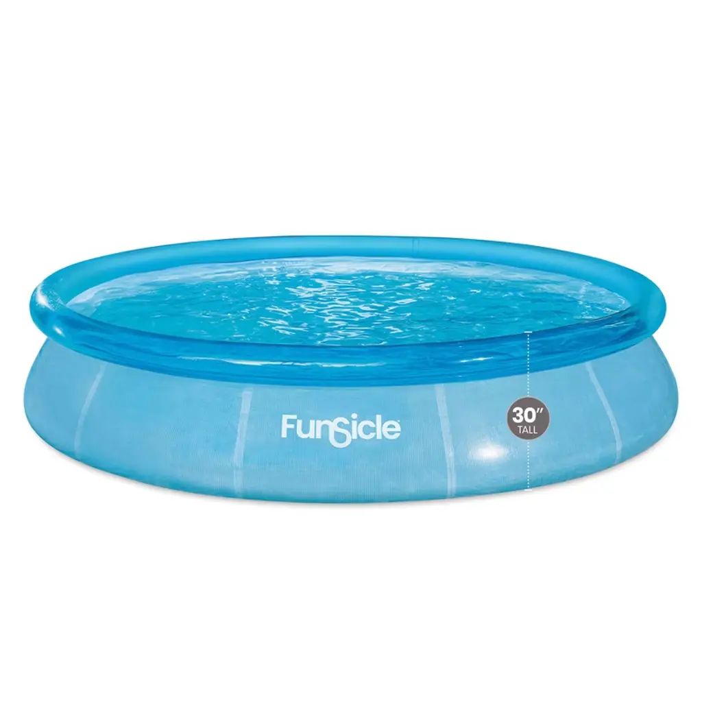 Funsicle 12' X 30" Sea-thru Quickset Round Inflatable Ring Top Outdoor Above Ground Swimming Pool Set With Pump And Cartridge Filter, Blue