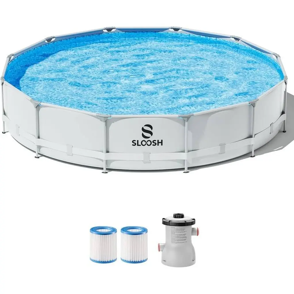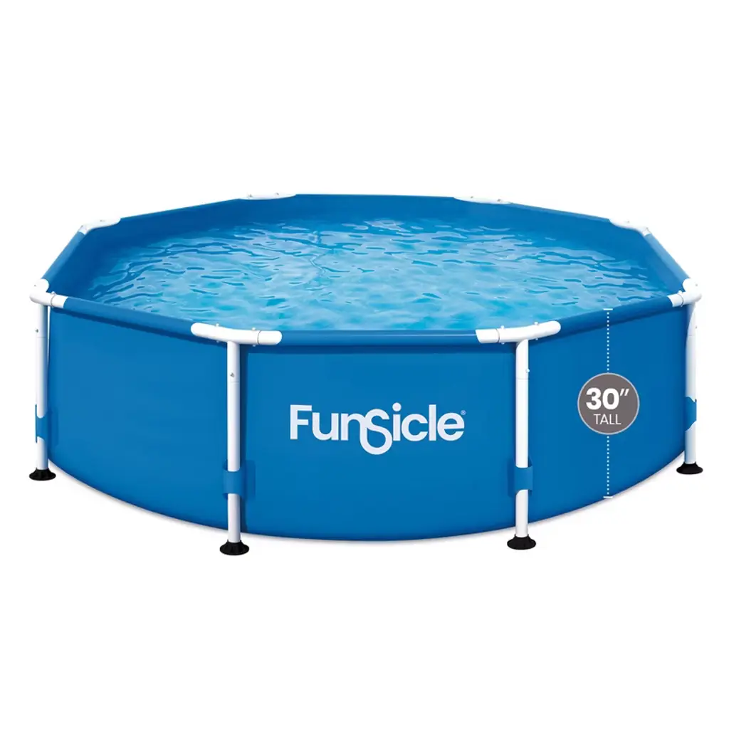 The Funsicle Outdoor Activity Round Swimming Pool includes all the essentials for exciting outdoor play and swimming. You will appreciate its quick setup, enabling you to easily build, fill and chill. Simply assemble the above ground pool frame by securing the poles together with the provided lock pins. The sturdy metal structure and material that resists punctures ensure a long-lasting pool to enjoy. For clean and sparkling water, this pool for the backyard comes with a powerful filtration system that includes a built-in 2-in-1 skimmer. The filter pump conveniently attaches to the pool's side wall, keeping swimmers safe from tripping. With space for multiple people, the family pool offers space for everything from relaxing to swimming to splashing the day away. Best for young families, party hosts, and outdoor enthusiasts who appreciate being active in a high-value pool, the Funsicle Activity Pool is just what you need this season. Disclaimer: Please review your HOA rules and restrictions before purchasing this product. Not all housing agencies permit private above-ground pools.