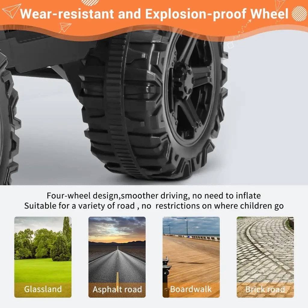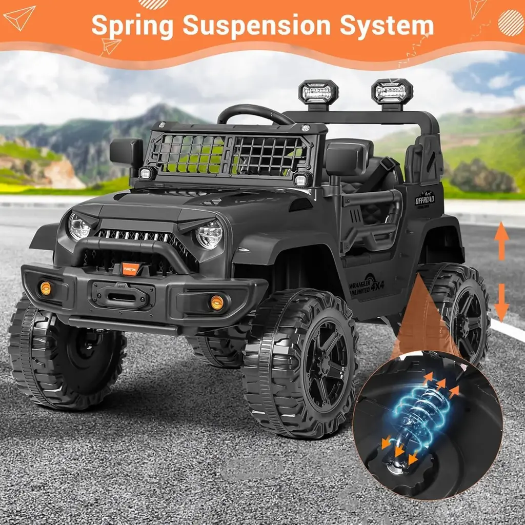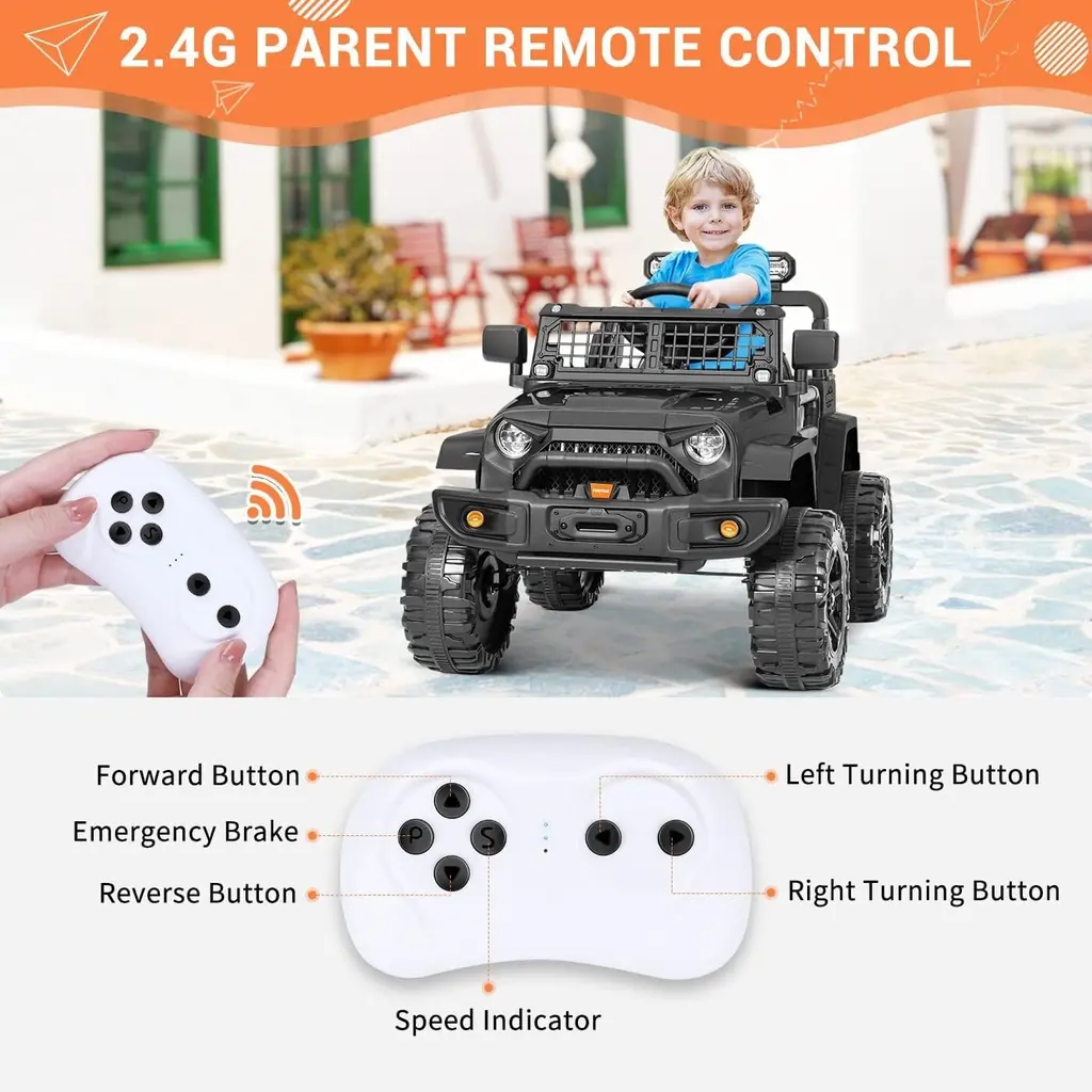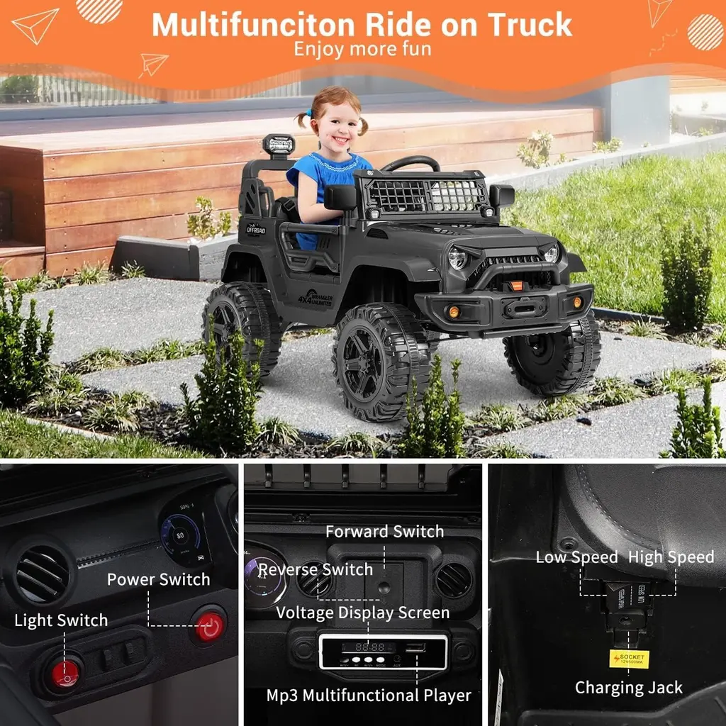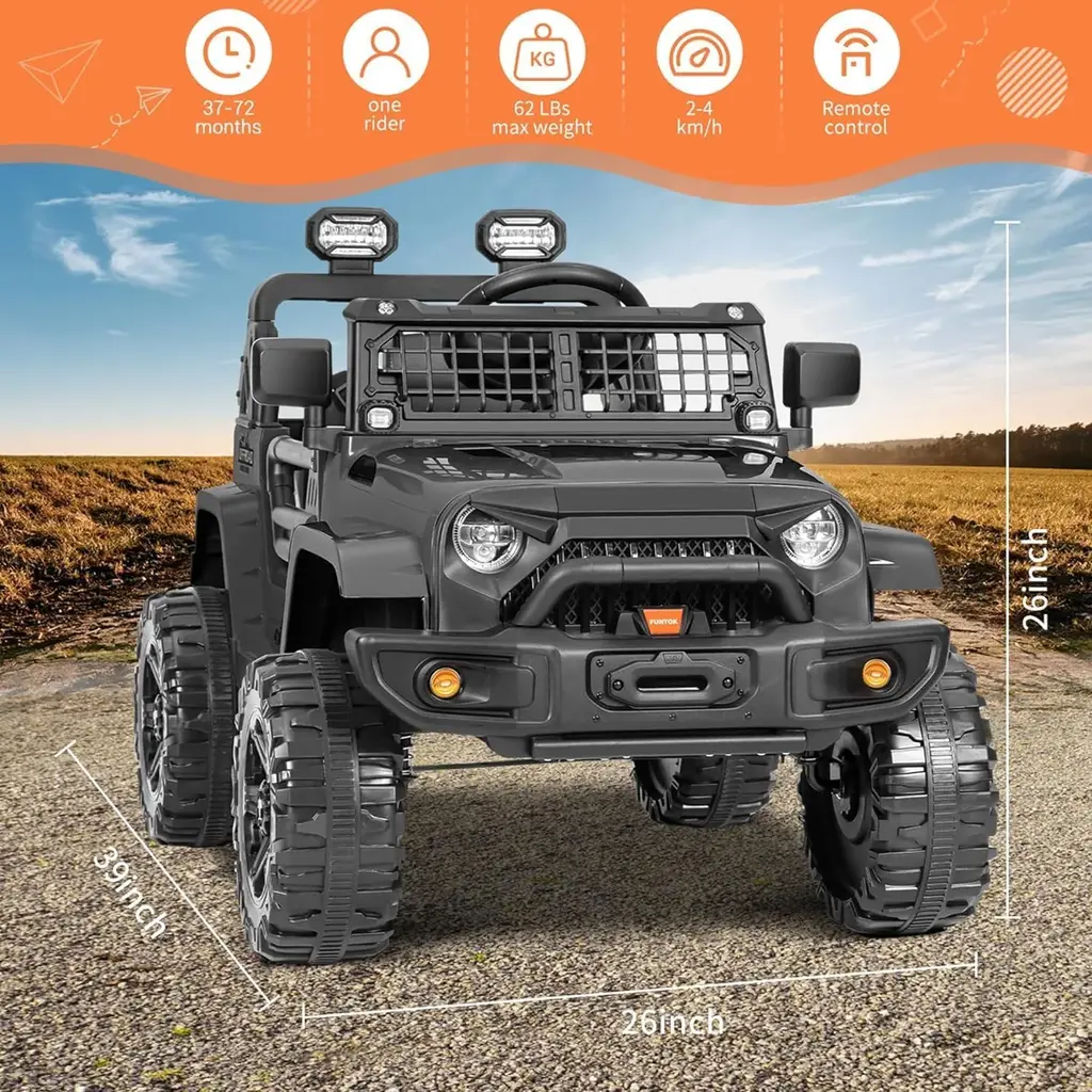 Funtok R01 Remote Control Ride On Truck 12v Battery Powered Electric Ride On Car - Black