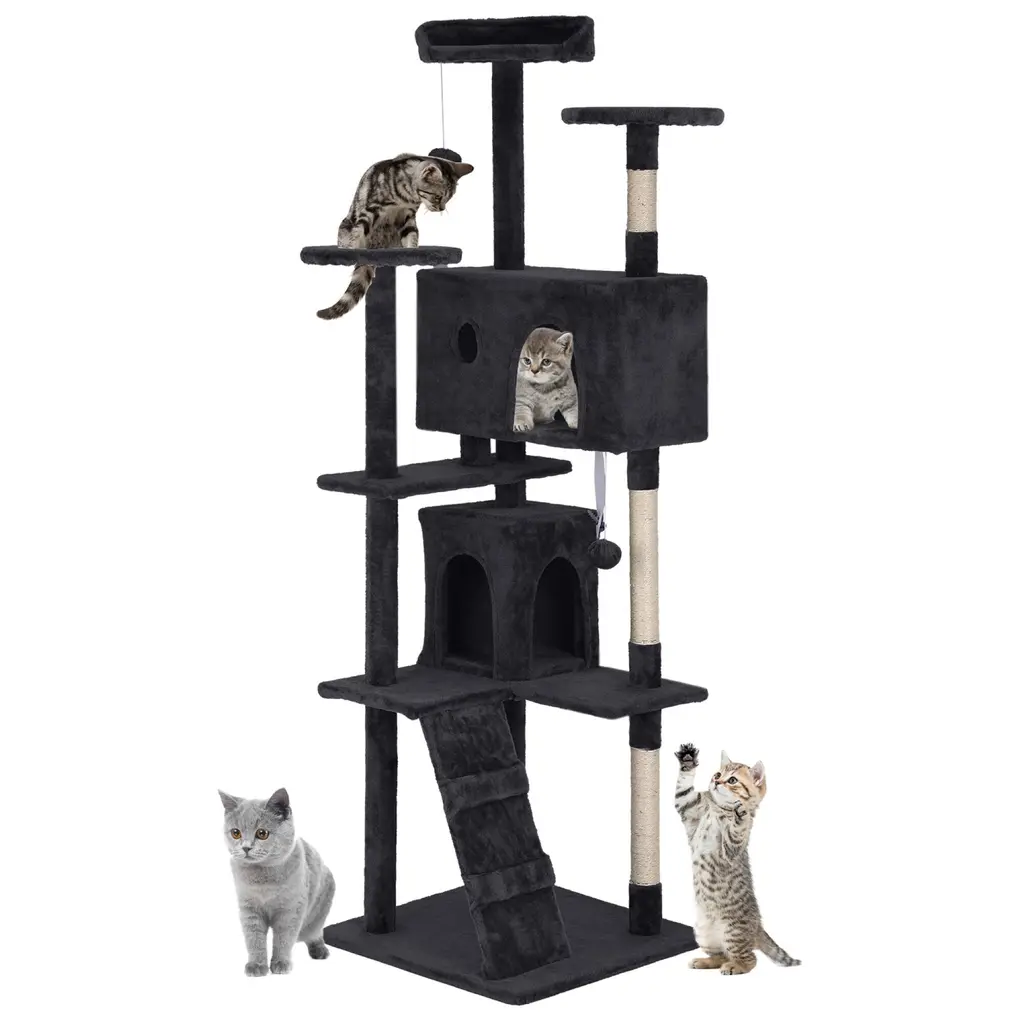 Furniture Of America Cat Tree Multi-Level Cat Tower With Ladder, Platforms And Condos - 70-Inch - Dark Grey