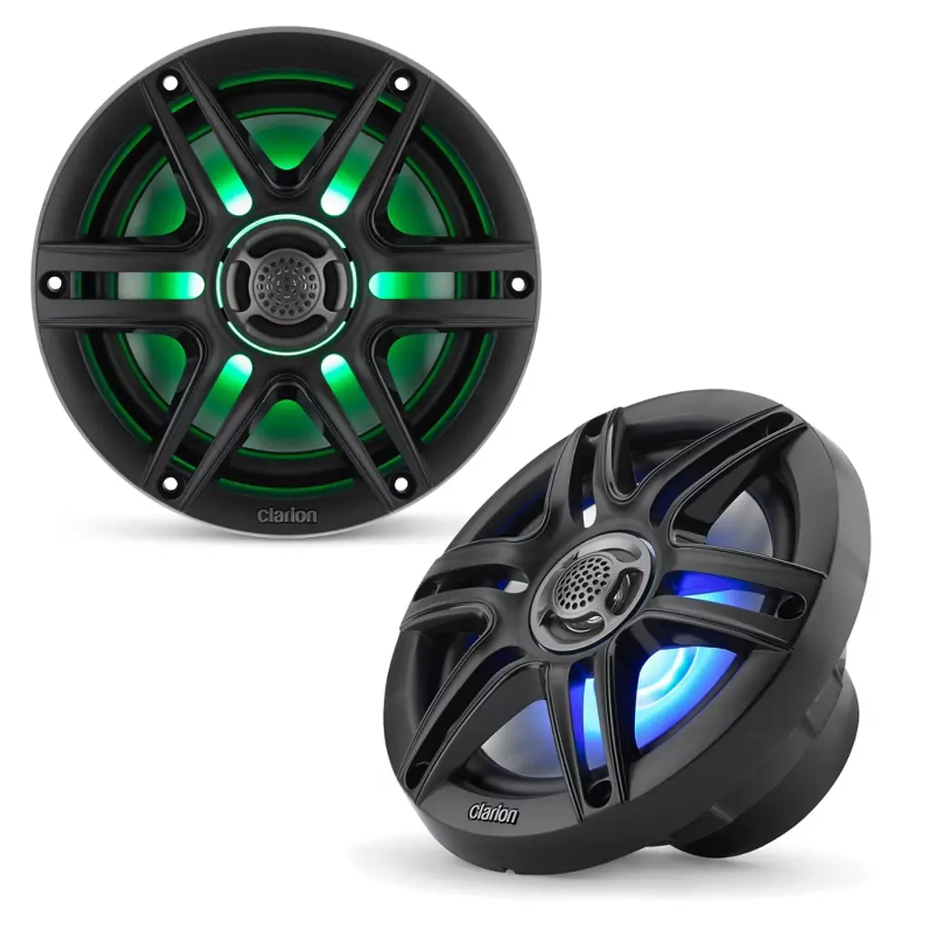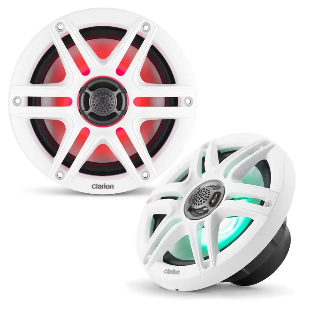 Fusion Ms-ra800 Apollo Source Unit W/ ( 2 Pair ) Clarion Cms-651rgb-swb 6.5-inch Coaxial Marine Speakers With Built-in Rgb Illumination ( Includes ...