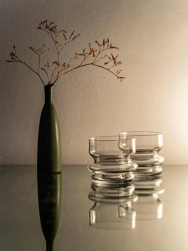 Fuso short glass by RiesDimensions: D9.5 x H6.7 cm Materials: CrystalAlso available: Fuso tall & fuso vase.Ries is a design studio based in Buenos Aires, Argentina, focused on product and conemporary furniture design. The studio’s approach to design is influenced by it’s members mixed background in architecture and industrial design, who through a shared vision, combine different materials with production processes rooted in craft and insdustry to create pieces that seek to elevate the experience of the everyday life. Being actively involved in the making of their pieces allows them to have alternative readings of standarized production processes that embrace both success and failure as an outcome and therefore, their pieces are imprinted with those stories. The studio was founded in 2016 and is directed by Marcos Altgelt and Tasio Picollo.