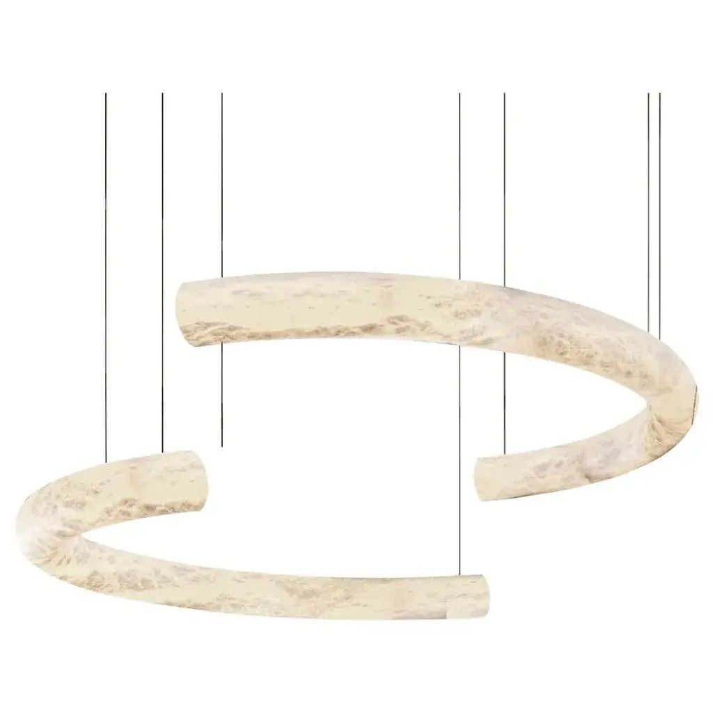 Futatsu medium suspension lamp by alabastro italiano dimensions: ø 80 x h 200 cm. Materials: white alabaster and metal. Available in different finishes: shiny silver, bronze, brushed brass, ruggine of florence, brushed burnished, shiny gold, brushed black, freedom green, shiny black, copper and matt black. Also available in different sizes. Please contact us. All our lamps can be wired according to each country. If sold to the usa it will be wired for the usa for instance. Futatsu invites you to explore the captivating beauty that arises from division and unity, reflecting the inherent balance found in pair where the beauty of one half finds its true significance in the presence of the other. The alabaster, with its unique texture and translucency, becomes a canvas for the duality of opposing forces and the equilibrium that arises when they dance together. After years of experience in the family business, which specializes in design and lighting, riccardo and alberto ongarato found the brand alabastro italiano. Each project is conceived and designed to give a strong sign of recognizability and uniqueness. The use of precious materials such as alabaster, brass, leather and blown glass, worked by the skilful hands of our craftsmen, are combined to create “timeless” objects. From the depths of the earth to the light of the sun. Alabastro italiano care about these extremes and transcends them in a creative dynamic that emphasizes simplicity and clean-cut lines. The company has created an entirely new project made in italy, revolutionizing the previously existing collections into eternal and evergreen lighting elements. By designing clean-cut and original lines, built-in with the latest technology and continuously innovating, alabastro italiano has never lost sight of its goal: perfection. The result of this work is an extraordinary collection of alabaster lightings. Alabaster needs human hands to come to life. The charm of these stone objects comes from their uniqueness, from the fact that they come from the hand of those who has left a mark and a memory with their work, each grain makes each piece unique. Alabaster needs human hands to come to life. The charm of these stone objects comes from their uniqueness, from the fact that they come from the hand of those who has left a mark and a memory with their work, each grain makes each piece unique. Alabaster is a material that leaves little traces of magic all around it. It is difficult to identify the exact point where the material ends and its reflection begins. It is impossible to understand how far the light sinks in its soft transparency. It changes according to the positions in which it is placed, depending on the point of view. Alabaster is a compact and rare stone that lays down very precise laws requires a familiarity that only italian craftsmen possess. Alabastro italiano collaborates with each client to create a unique project. Starting from the advice for better architectural lighting, it brings its know-how, materials, design and creative inspiration to interior architects and interior designers. up to 250v (europe/uk standard).