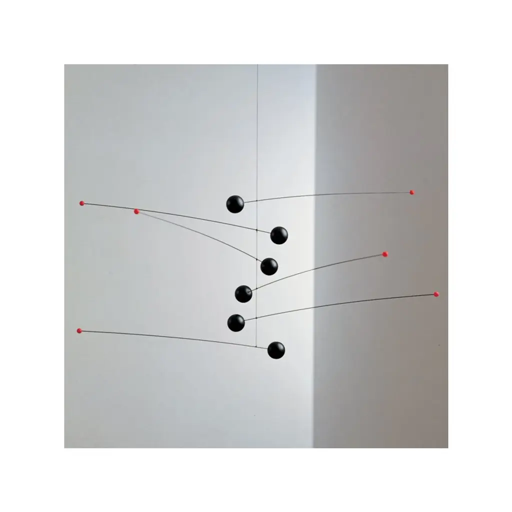 Futura is the first mobile designed by Ole Flensted and was introduced in 1970. Bars of light and heavy elements in dynamic tension suggest six planets with their moons. Handmade in Denmark, the Flensted mobiles are unique and stylish elements in home décor and public spaces. While floating in the air, the mobile catches the eye and envokes interest and creativity in both children and adults. Every Flendsted mobile is designed to constantly move with the air currents in a calm, balanced manner.