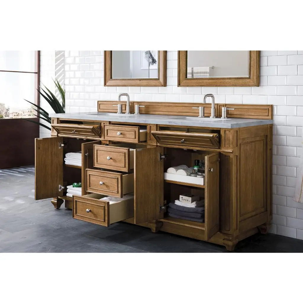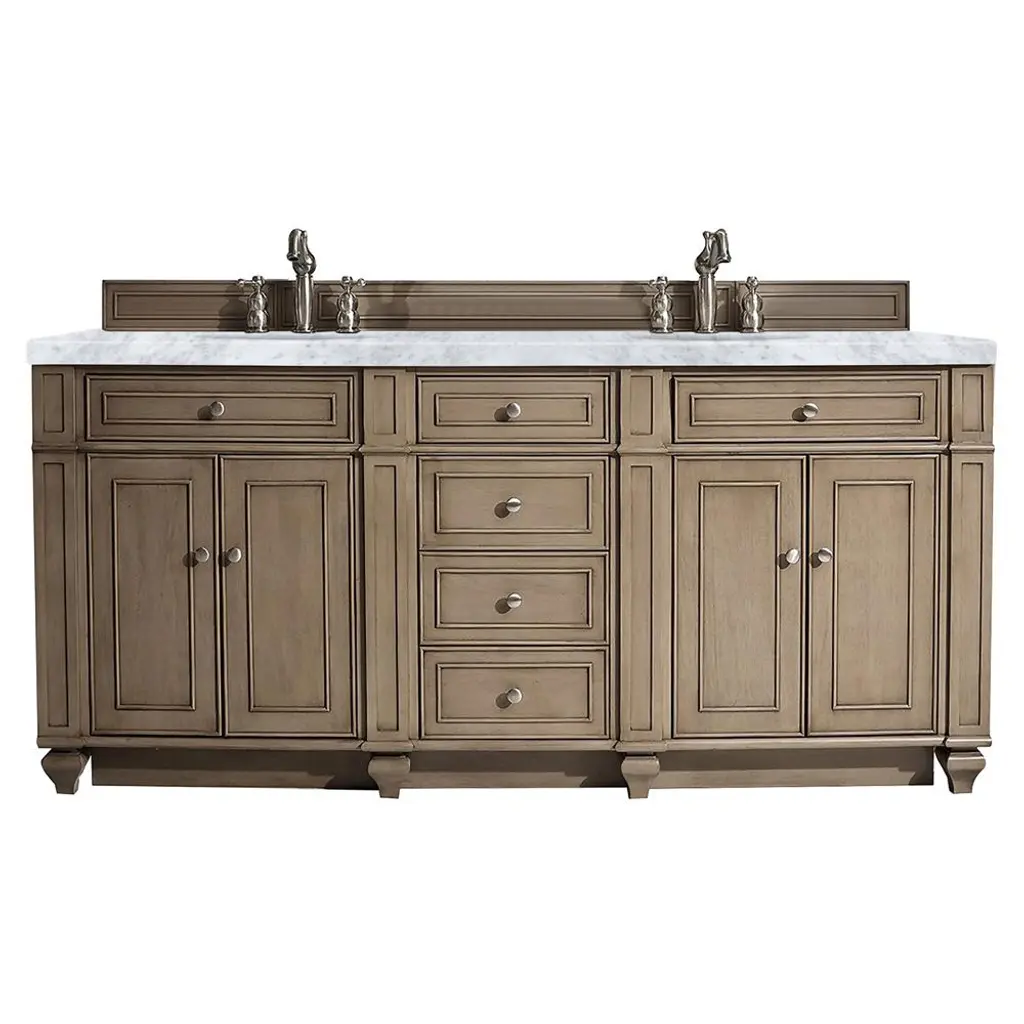 Fynn French Country Carrara Marble Brown Wood Double Vanity Sink - 72"