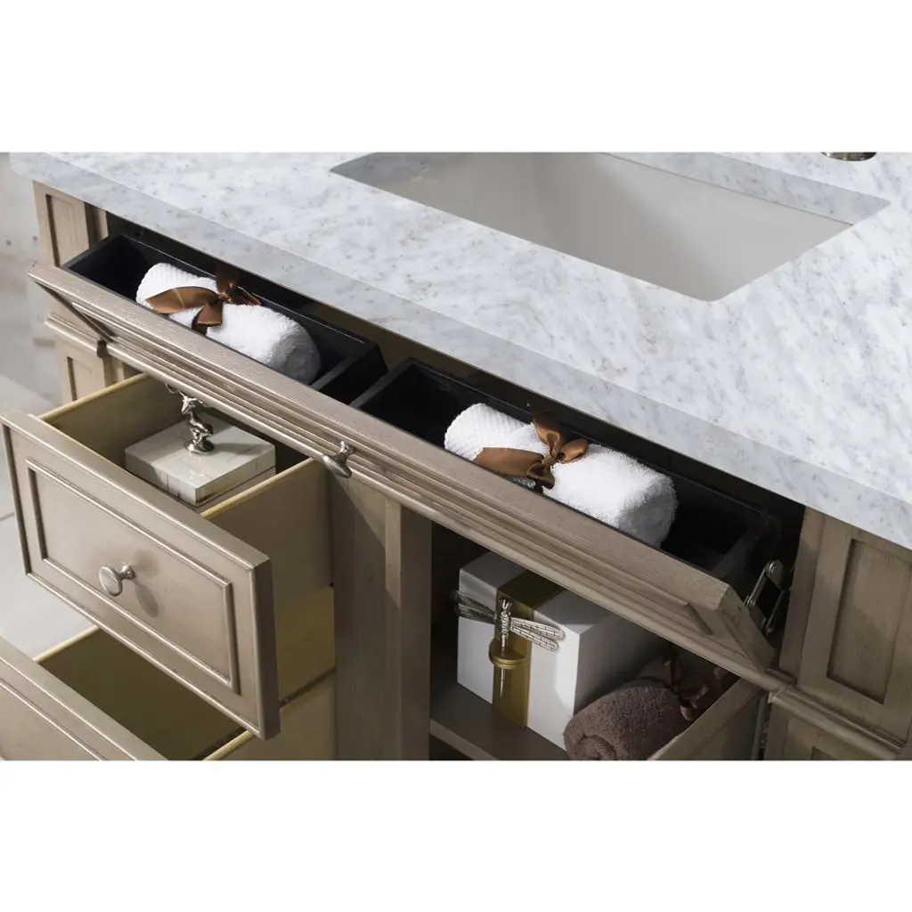 Fynn French Country Carrara Marble Whitewashed Wood Vanity Sink - 36"