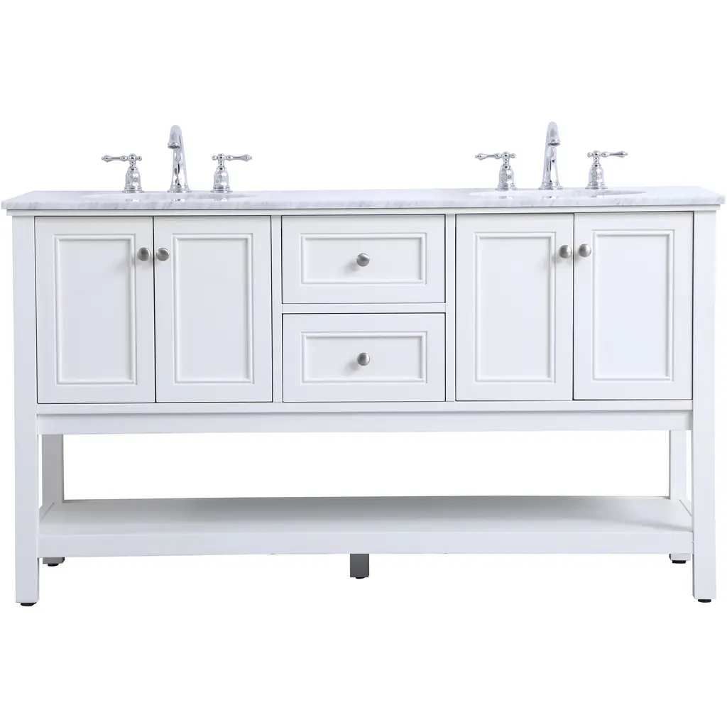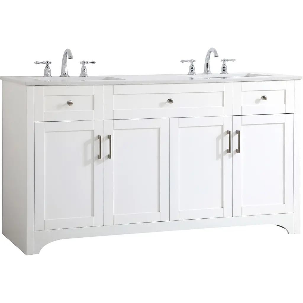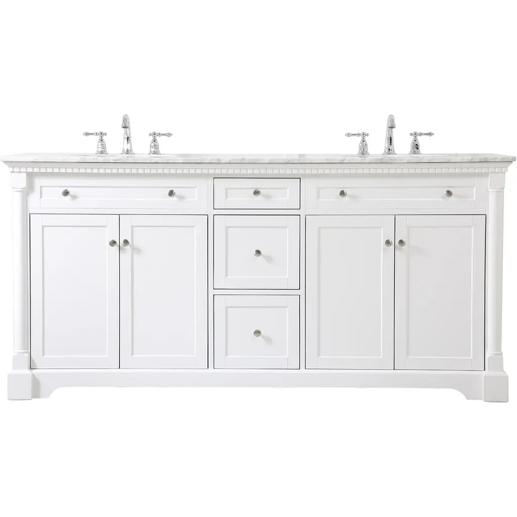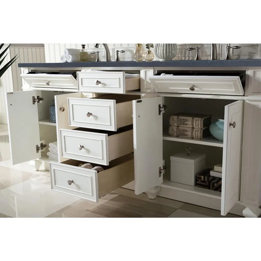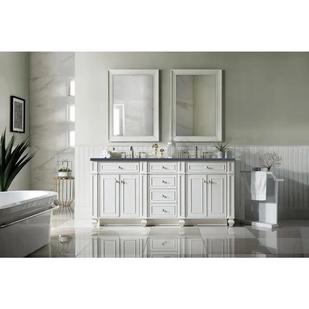 Fynn French Country Charcoal Quartz White Wood Double Vanity Sink - 72"