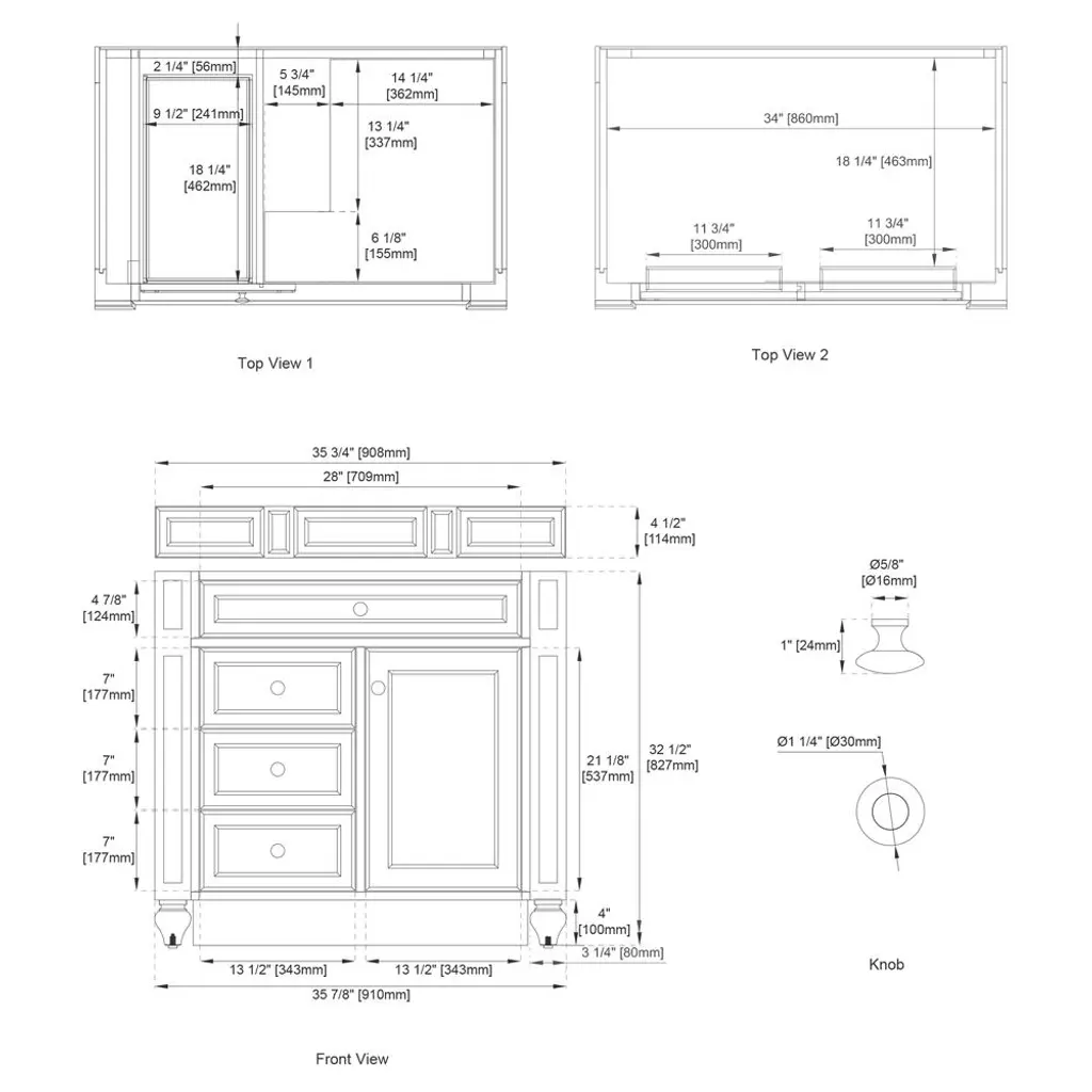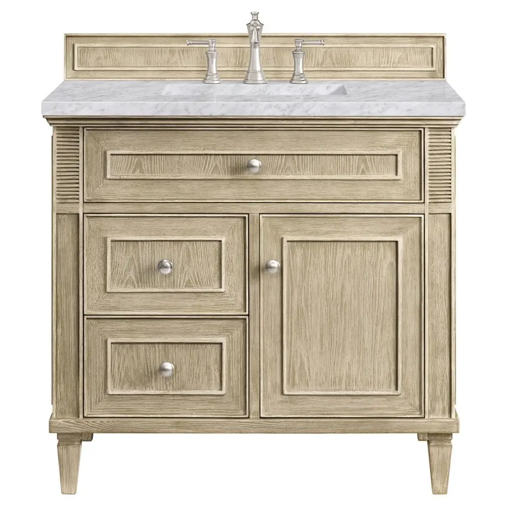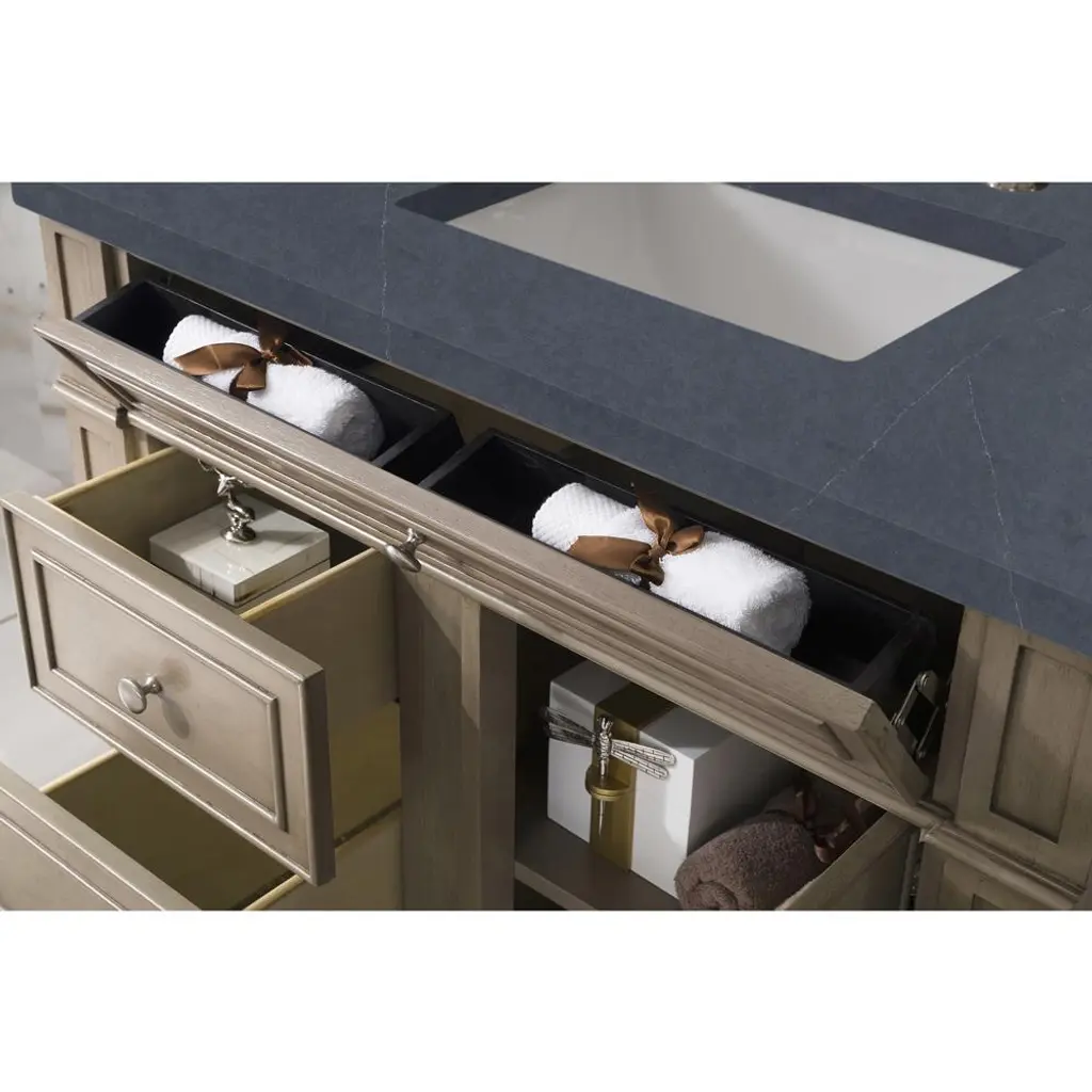 Fynn French Country Charcoal Quartz Whitewashed Wood Vanity Sink - 36"