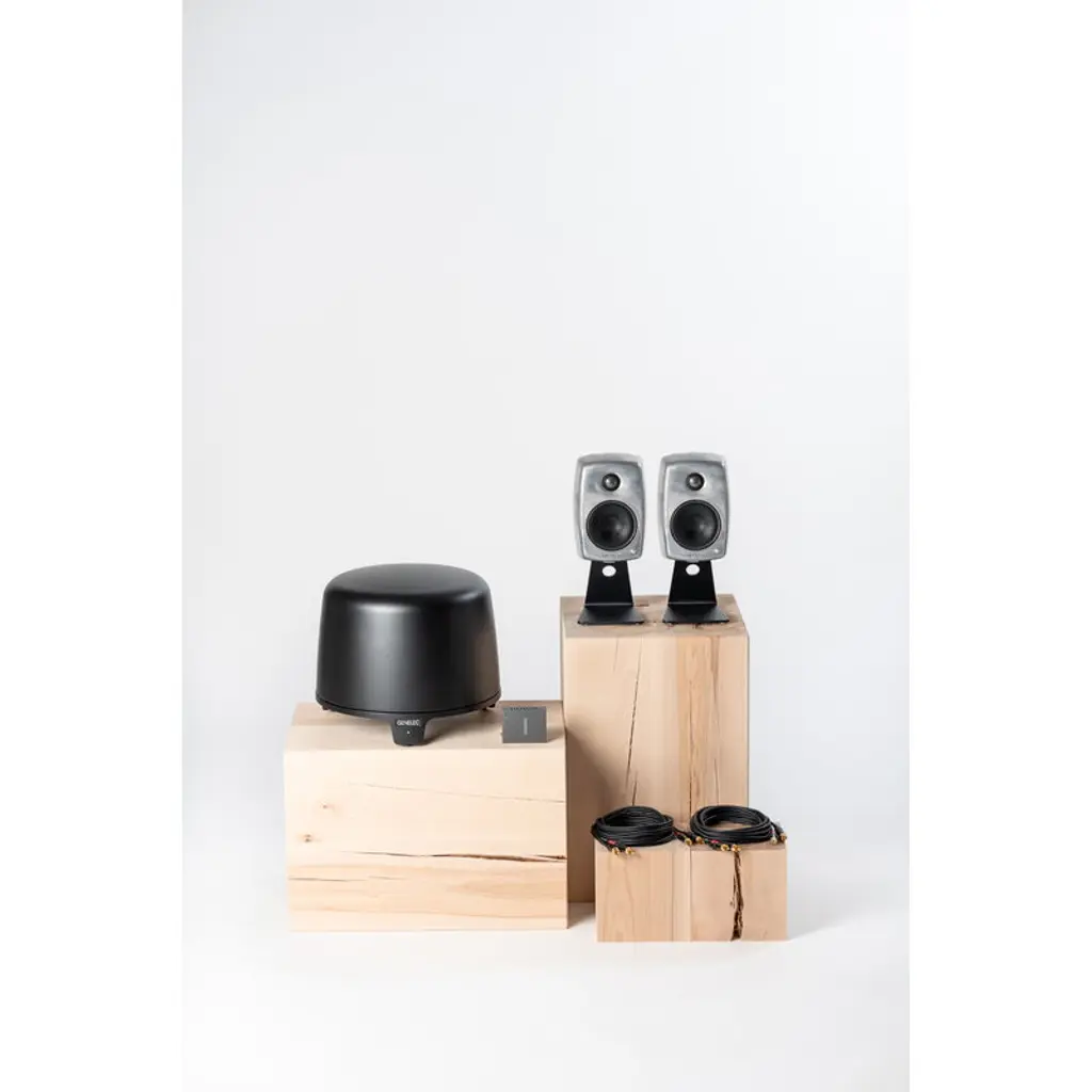 The Genelec G One & F One TV bundle is designed specifically for enjoying TV entertainment and achieving optimal sound quality in small home theaters. The set includes the following components: 2 x G One active speaker: Delivers astonishingly dynamic sound for its compact size, with a built-in amplifier that eliminates the need for external amplification. The RAW model is made from recycled and unpainted aluminum that gives the speaker an elegantly raw, industrial feel. Awarded the Japanese Audio Excellence and VGP Lifestyle Award 2015. F One active subwoofer: Provides deep and dynamic bass response down to 35 Hz, enhancing the low frequencies of Genelec's G series active speakers. Thanks to its many inputs and remote control options, it can also be used as a hub to control your home audio system. Additionally, it can learn commands from external IR remotes. The integrated bass control directs all frequencies under 85 Hz to the subwoofer, enabling the main speakers to focus on the rest of the spectrum. 2 x G One table stand: Prevents sound reflections from the surface and eliminates comb filtering distortions. The metal stand allows the speaker to be positioned at an optimal height on a desk or TV stand, while the tilt function enables precise angling for the best listening experience. Marmitek ARC13 HDMI-RCA converter: A compact and easy-to-use adapter that lets you connect active speakers directly to your TV's HDMI port with crisp and clear sound quality. Includes a headphone jack. 2 x RCA-RCA audio cable: The high-quality Supra Sublink RCA cable offers excellent shielding and minimal noise. Length: 118.11 x 0 in (3 x m. m). The Genelec speakers have been designed to provide the listeners with even the most subtle nuances without removing or adding anything to the original sound. The rounded lines and refined design by Harri Koskinen give the Genelec speakers a lovely, Scandinavian vibe. The Genelec speakers are manufactured in Iisalmi, Finland. Key technologies: G One speakers: Directivity Control Waveguide (DCW) Reflex port design Optimized amplifiers Protection circuitry Iso-Pod base Minimum Diffraction Enclosure (MDE) Room response compensation Active crossovers Intelligent Signal Sensing (ISS) Versatile mountings F One subwoofer: Bass management Optimized amplifiers Protection circuitry Room response compensation Active crossovers Intelligent Signal Sensing (ISS)