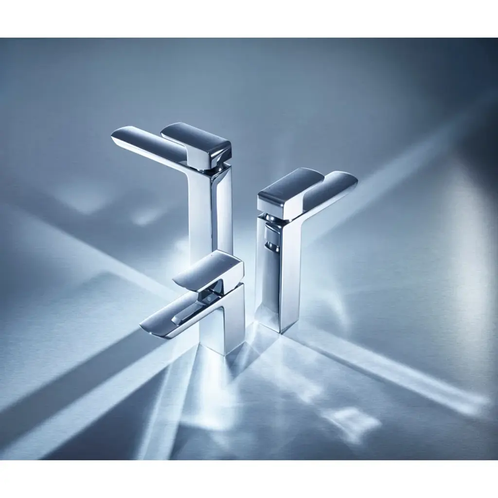 The sharp edge of the GR spout and handle gives proper weight to the product. In contrast, the top panel incorporates curves and a soft slope, making the overall impression one of regal elegance.