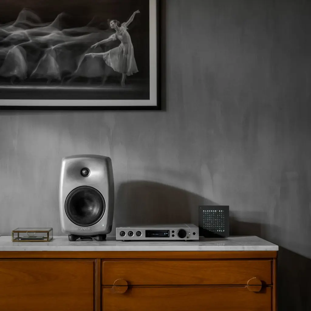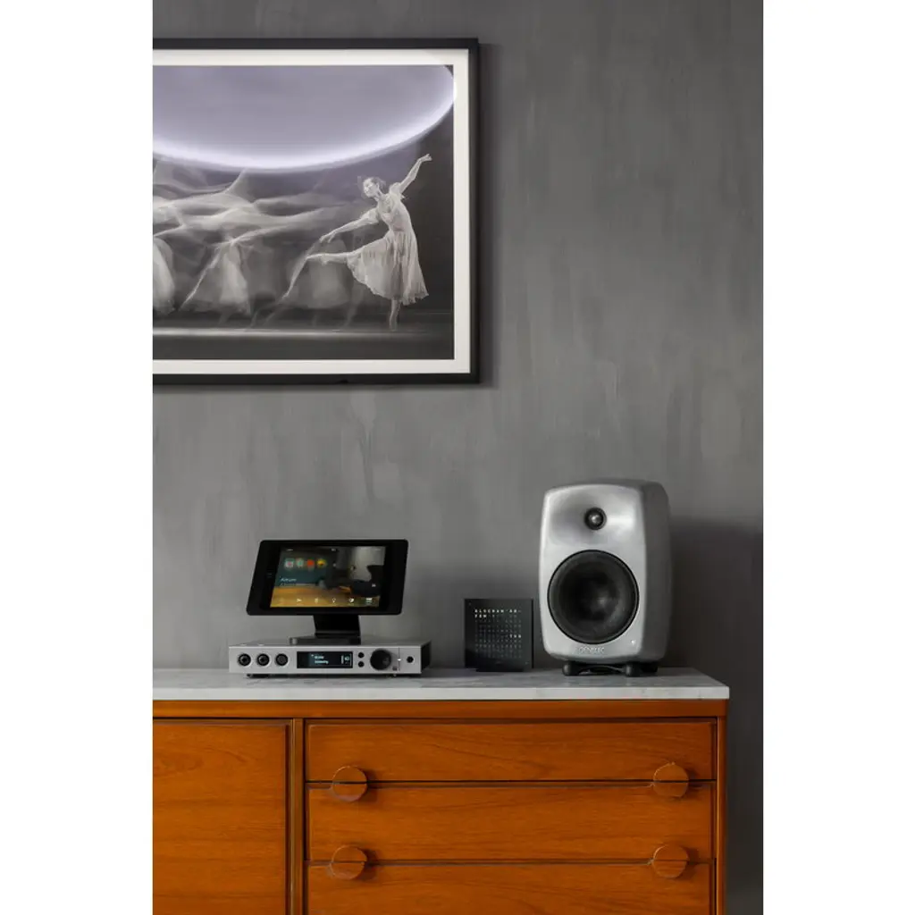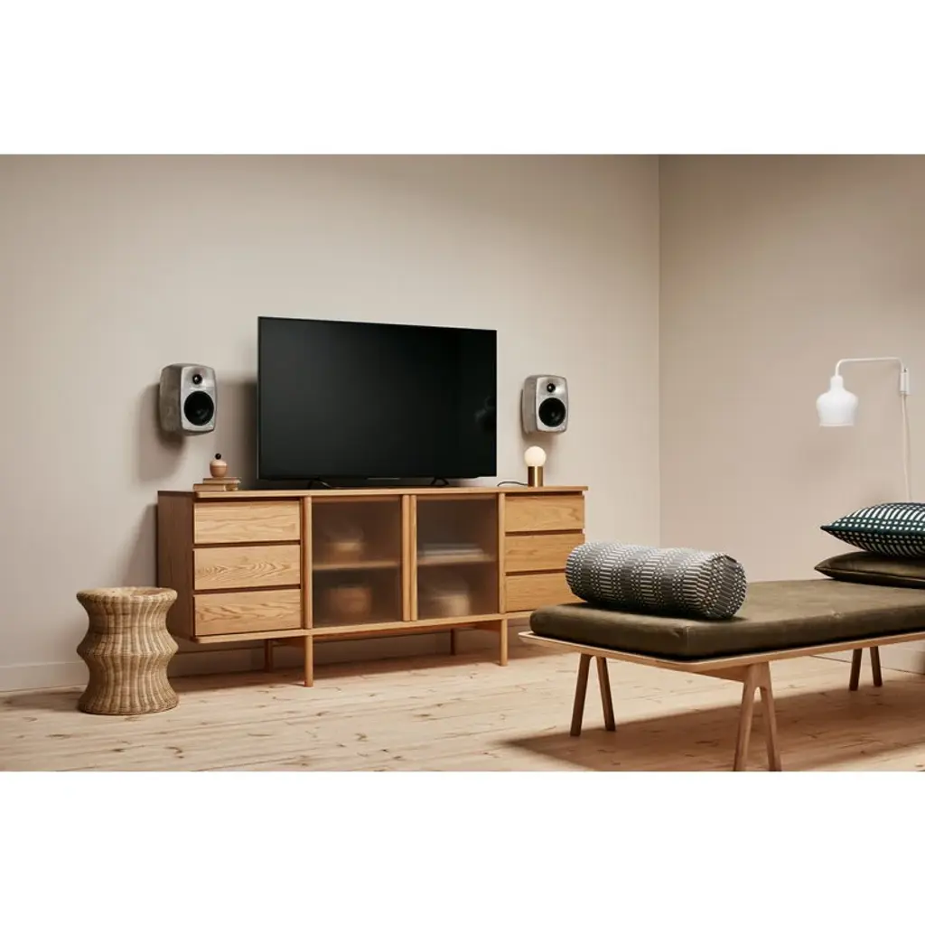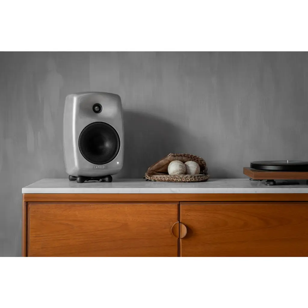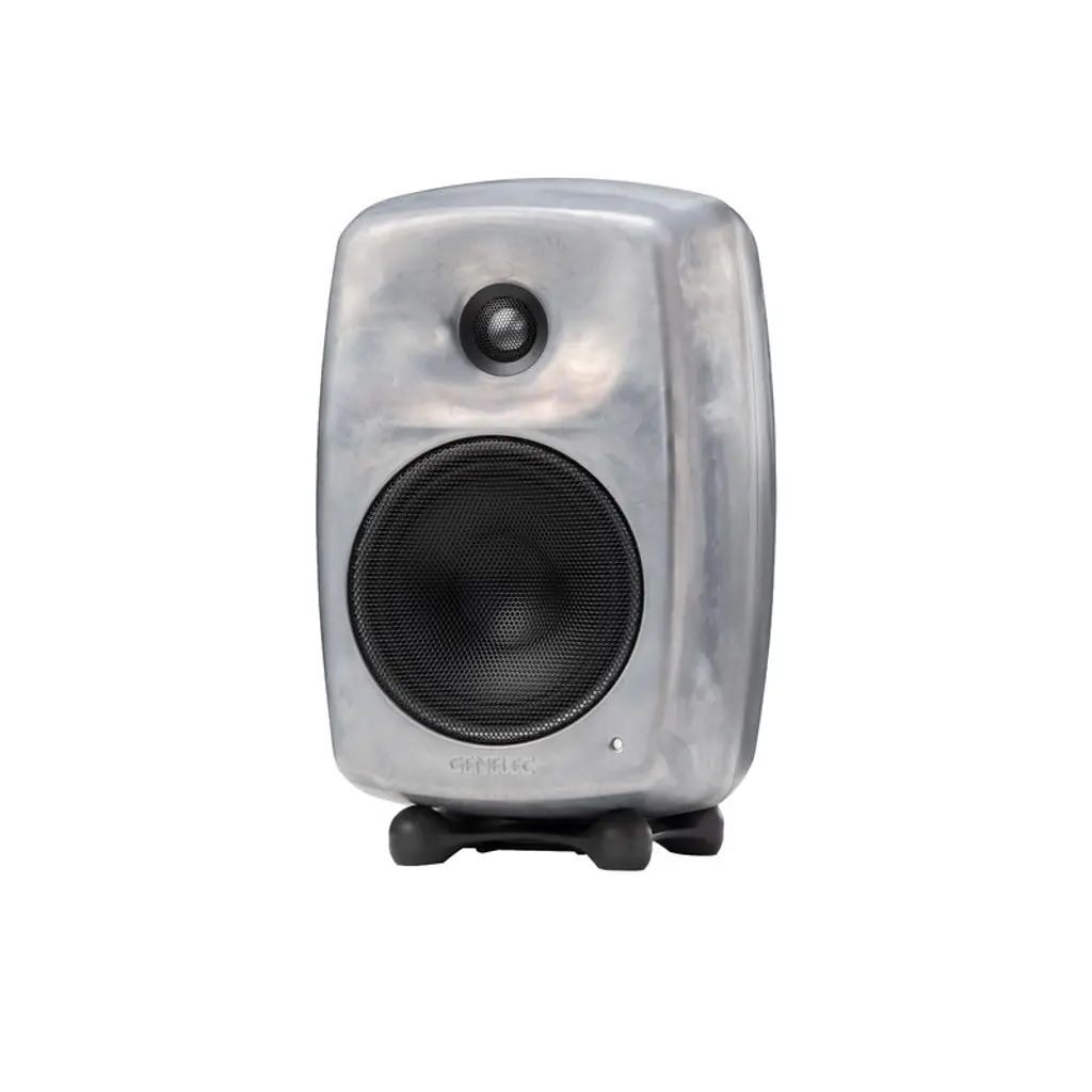The Genelec G Three active speaker has a compact size yet an astonishingly dynamic performance, and its active design makes external power amplifiers unneeded. The RAW model is made from recycled and unpainted aluminum that gives the speaker an elegantly raw, industrial feel. G Three adapts easily to many kids of acoustic environments and is ideal for music playback and home theaters. G Three has an effective playback of low frequencies, but for even deeper sound, you can combine it with a Genelec F subwoofer. The Genelec speakers have been designed to provide the listeners with even the most subtle nuances without removing or adding anything to the original sound. The rounded lines and refined design gives the Genelec speakers a lovely, Scandinavian vibe. The Genelec speakers are manufactured in Iisalmi, Finland. Key technologies: Directivity Control Waveguide (DCW) Reflex port design Optimized amplifiers Protection circuitry Iso-Pod base Minimum Diffraction Enclosure (MDE) Room response compensation Active crossovers Intelligent Signal Sensing (ISS) Versatile mountings