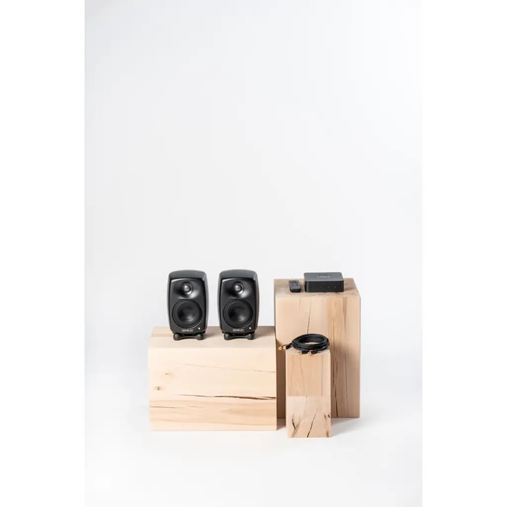 The Genelec G Two Audio bundle is designed for high-quality music streaming and creating a wireless sound system for your entire home. The set includes the following components: 2 x G Two active speakers: Delivers astonishingly dynamic sound for its compact size, with a built-in amplifier that eliminates the need for external amplification. For enhanced low frequencies, pair with a Genelec F series subwoofer. Awarded the Japanese Audio Excellence and VGP Lifestyle Award 2015. WiiM Pro Plus audio streamer: Brings high-resolution 24-bit/192 kHz streaming to the G Two speakers without a separate amplifier. Stream music directly from Spotify, Tidal, and Amazon Music, or use the WiiM Home app for access to other streaming services. Compatible with AirPlay 2 and Chromecast Audio, supports voice control via Alexa, Siri, and Google Voice. Features include an analog RCA input and output, digital optical and coaxial input, as well as an optical output. Powered via USB-C. 2 x RCA-RCA audio cable: The high-quality Supra Sublink RCA cable offers excellent shielding and minimal noise. Length: 118.11 x 0 in (3 x m. m). The Genelec speakers have been designed to provide the listeners with even the most subtle nuances without removing or adding anything to the original sound. The rounded lines and refined design by Harri Koskinen give the Genelec speakers a lovely, Scandinavian vibe. The Genelec speakers are manufactured in Iisalmi, Finland. Key technologies: Directivity Control Waveguide (DCW) Reflex port design Optimized amplifiers Protection circuitry Iso-Pod base Minimum Diffraction Enclosure (MDE) Room response compensation Active crossovers Intelligent Signal Sensing (ISS) Versatile mountings