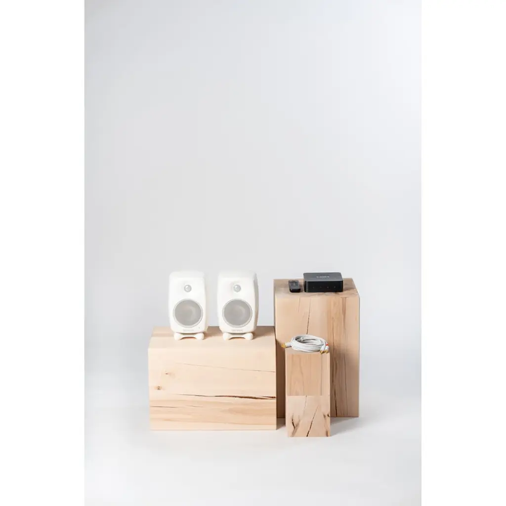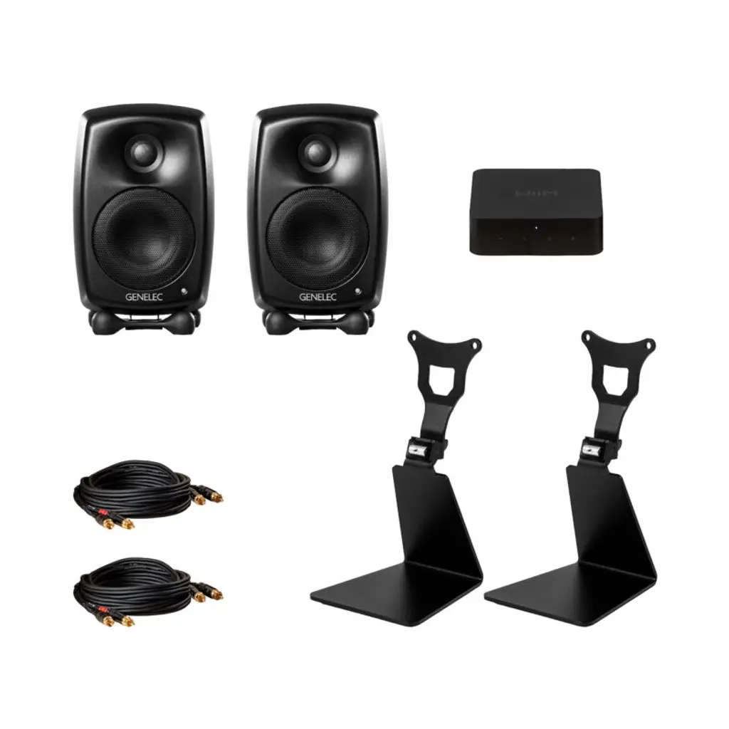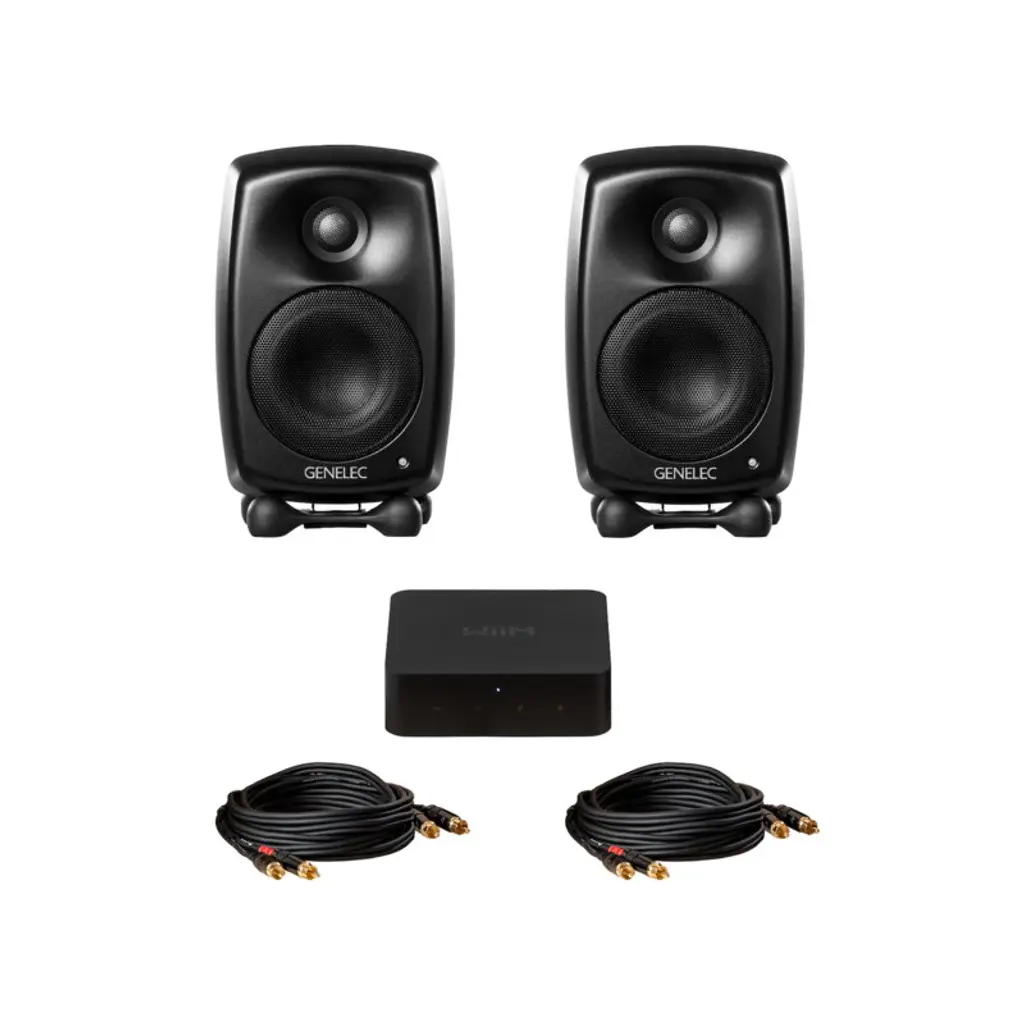 The Genelec G Two Audio bundle is designed for high-quality music streaming and creating a wireless sound system for your entire home. The set includes the following components: 2 x G Two active speakers: Delivers astonishingly dynamic sound for its compact size, with a built-in amplifier that eliminates the need for external amplification. For enhanced low frequencies, pair with a Genelec F series subwoofer. Awarded the Japanese Audio Excellence and VGP Lifestyle Award 2015. WiiM Pro Plus audio streamer: Brings high-resolution 24-bit/192 kHz streaming to the G Two speakers without a separate amplifier. Stream music directly from Spotify, Tidal, and Amazon Music, or use the WiiM Home app for access to other streaming services. Compatible with AirPlay 2 and Chromecast Audio, supports voice control via Alexa, Siri, and Google Voice. Features include an analog RCA input and output, digital optical and coaxial input, as well as an optical output. Powered via USB-C. 2 x RCA-RCA audio cable: The high-quality Supra Sublink RCA cable offers excellent shielding and minimal noise. Length: 118.11 x 0 in (3 x m. m). The Genelec speakers have been designed to provide the listeners with even the most subtle nuances without removing or adding anything to the original sound. The rounded lines and refined design by Harri Koskinen give the Genelec speakers a lovely, Scandinavian vibe. The Genelec speakers are manufactured in Iisalmi, Finland. Key technologies: Directivity Control Waveguide (DCW) Reflex port design Optimized amplifiers Protection circuitry Iso-Pod base Minimum Diffraction Enclosure (MDE) Room response compensation Active crossovers Intelligent Signal Sensing (ISS) Versatile mountings
