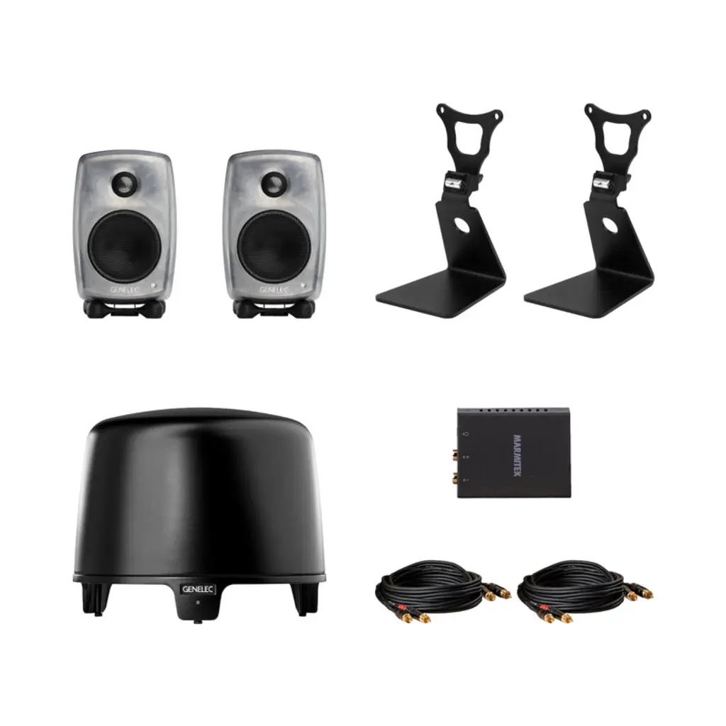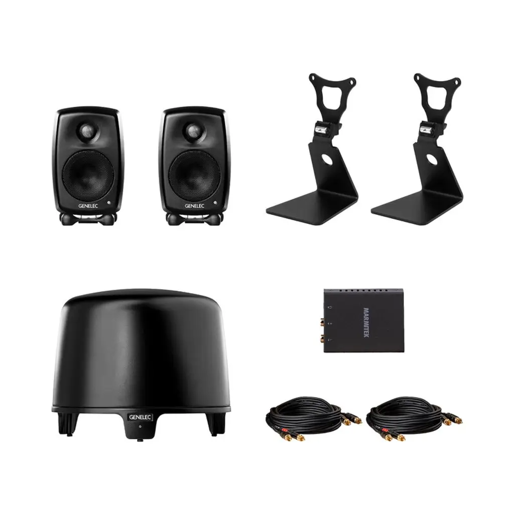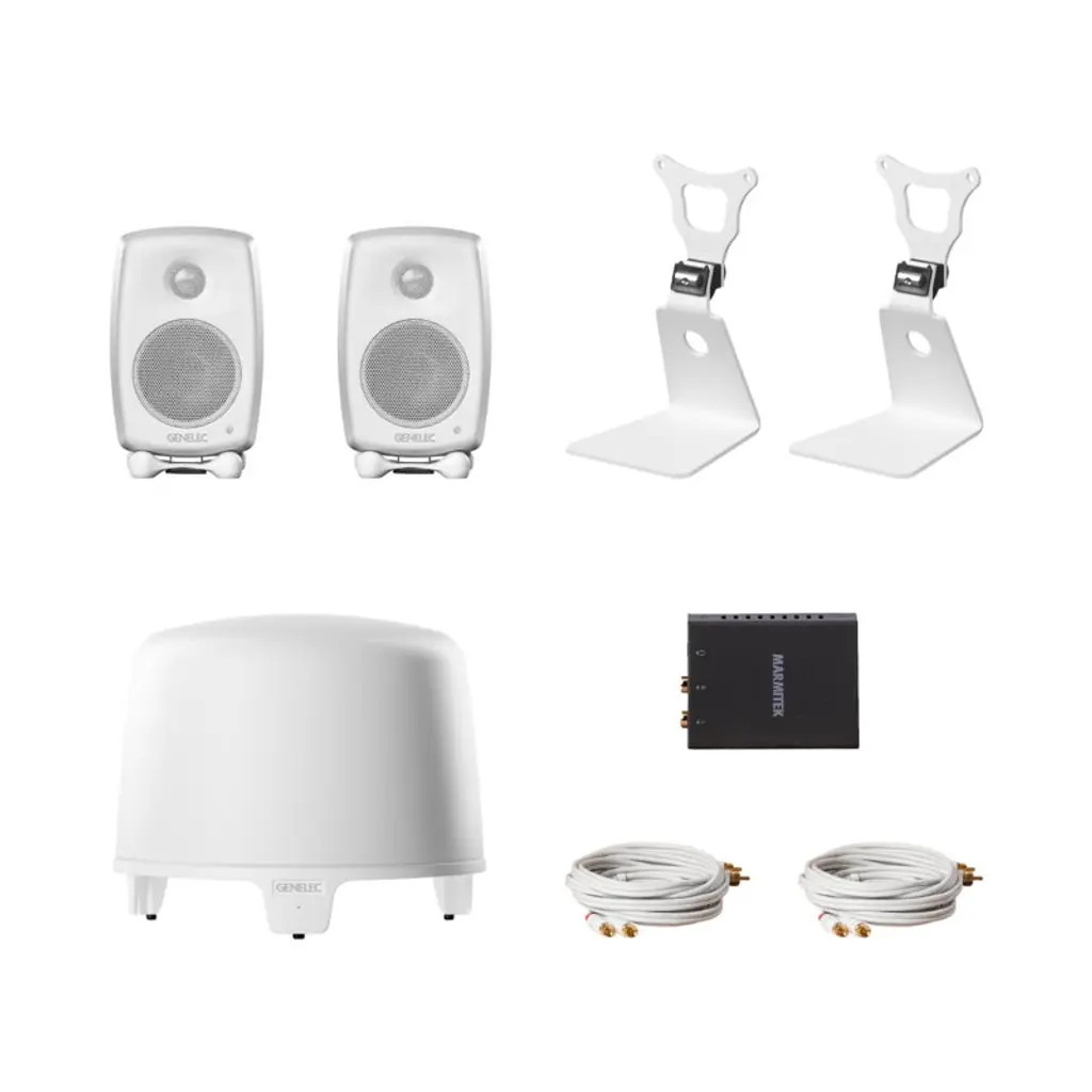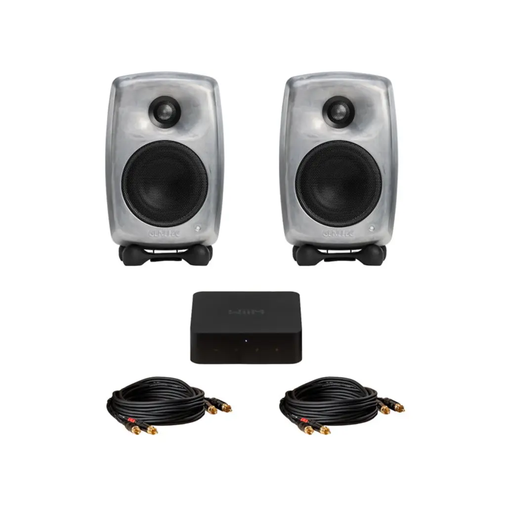 The Genelec G Two Audio bundle is designed for high-quality music streaming and creating a wireless sound system for your entire home. The set includes the following components: 2 x G Two active speakers: Delivers astonishingly dynamic sound for its compact size, with a built-in amplifier that eliminates the need for external amplification. For enhanced low frequencies, pair with a Genelec F series subwoofer. Awarded the Japanese Audio Excellence and VGP Lifestyle Award 2015. WiiM Pro Plus audio streamer: Brings high-resolution 24-bit/192 kHz streaming to the G Two speakers without a separate amplifier. Stream music directly from Spotify, Tidal, and Amazon Music, or use the WiiM Home app for access to other streaming services. Compatible with AirPlay 2 and Chromecast Audio, supports voice control via Alexa, Siri, and Google Voice. Features include an analog RCA input and output, digital optical and coaxial input, as well as an optical output. Powered via USB-C. 2 x RCA-RCA audio cable: The high-quality Supra Sublink RCA cable offers excellent shielding and minimal noise. Length: 118.11 x 0 in (3 x m. m). The Genelec speakers have been designed to provide the listeners with even the most subtle nuances without removing or adding anything to the original sound. The rounded lines and refined design by Harri Koskinen give the Genelec speakers a lovely, Scandinavian vibe. The Genelec speakers are manufactured in Iisalmi, Finland. Key technologies: Directivity Control Waveguide (DCW) Reflex port design Optimized amplifiers Protection circuitry Iso-Pod base Minimum Diffraction Enclosure (MDE) Room response compensation Active crossovers Intelligent Signal Sensing (ISS) Versatile mountings