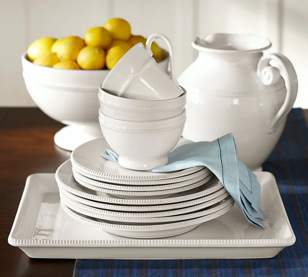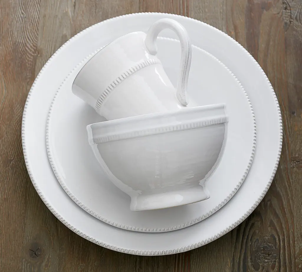 Carefully handcrafted by skilled artisans in Portugal, our Gabriella Dinnerware exhibits the fine detail of 18th-century European ceramics. The layers of glossy glaze allow bits of unfinished clay to peek through for an authentic look and feel.