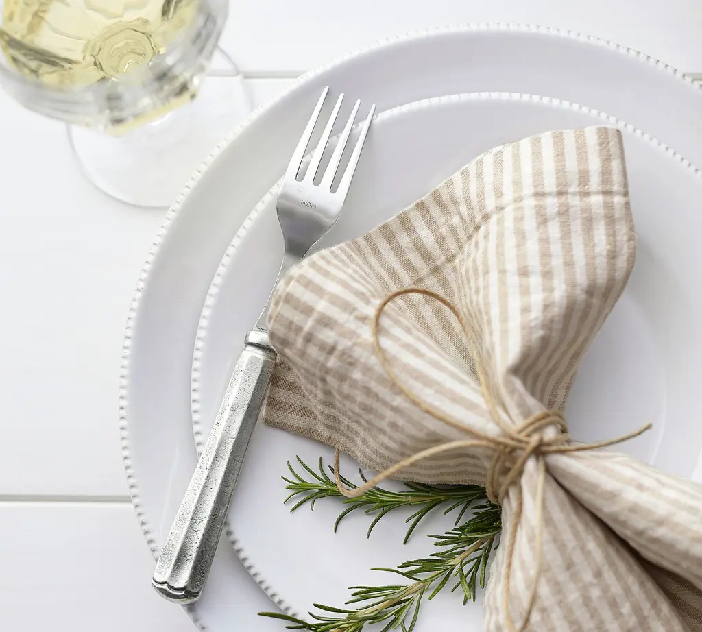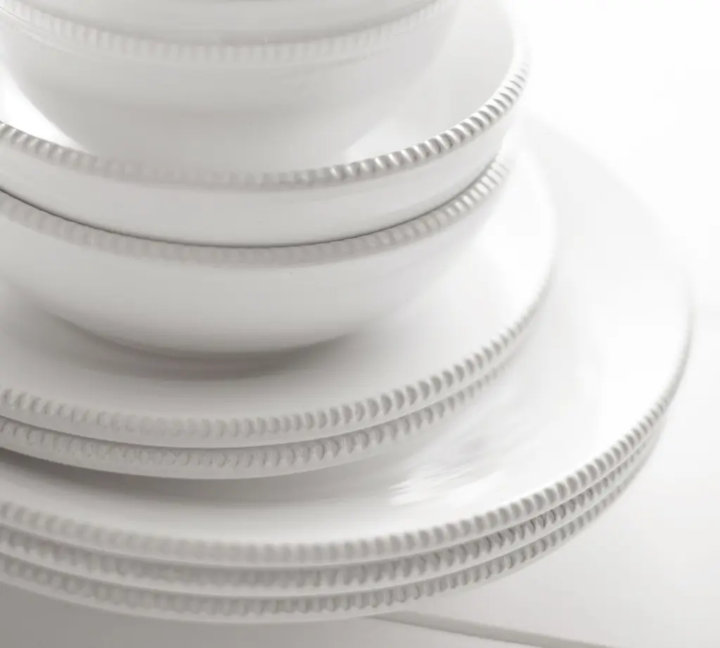 Carefully handcrafted by skilled artisans in Portugal, our Gabriella Dinnerware exhibits the fine detail of 18th-century European ceramics. The layers of glossy glaze allow bits of unfinished clay to peek through for an authentic look and feel.