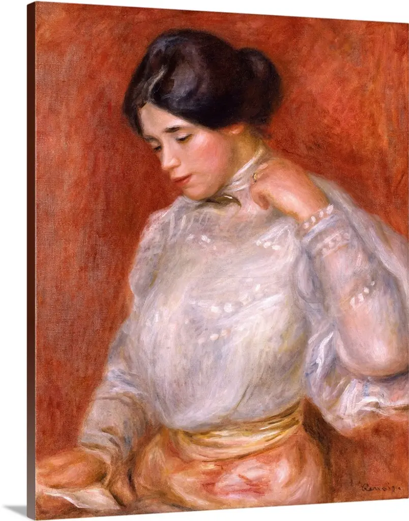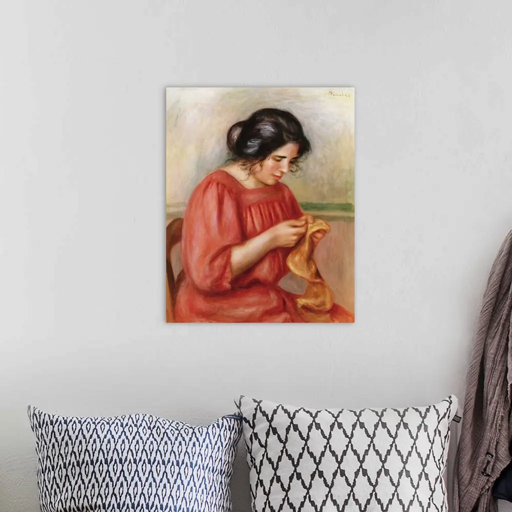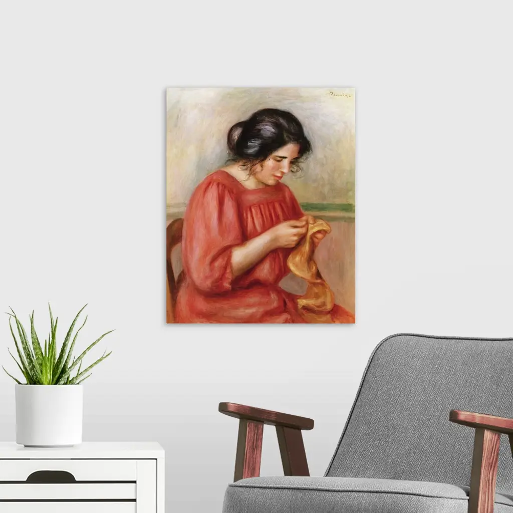 BAL76861 Gabrielle darning, 1908 by Renoir, Pierre Auguste (1841-1919); oil on canvas; 64x53.5 cm; Galerie Daniel Malingue, Paris, France; French, out of copyright