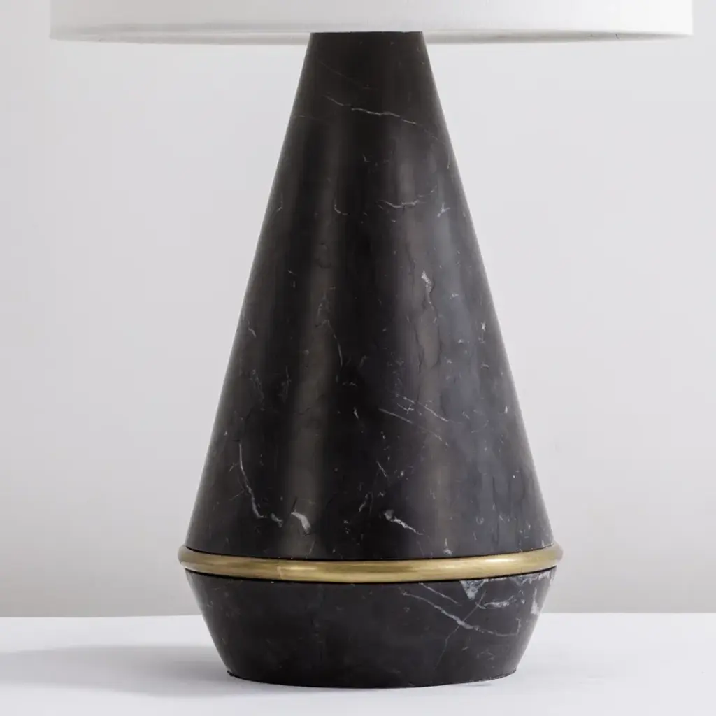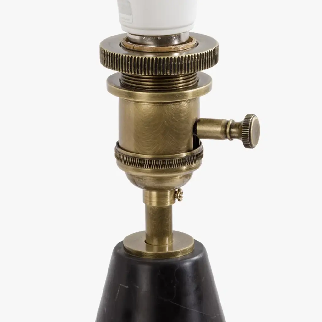 The Gabrielle lamp is inspired by the Art Deco period of the 1930's. The black marble base has a smooth and matte finish, adding a touch of understated luxury to the overall design, and has a contrasting metal band in an antique brass finish to add to the vintage feel. The shade made of 100% natural linen which produces a soft and diffused light when the lamp is illuminated. A dimmer switch allows the amount of light given out to be controlled.