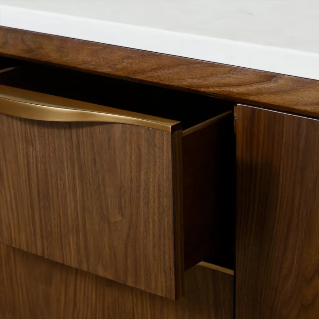 Designed by Julie Lawrence of Roanoke, Virginia, our collection is handcrafted from premium American walnut. Paying homage to 1960s Brazilian Modernism, the elegant silhouette is contrasted by gently contoured edges, tapered legs and sculptural, artisan-forged metal hardware. SHOP THE ENTIRE COLLECTION