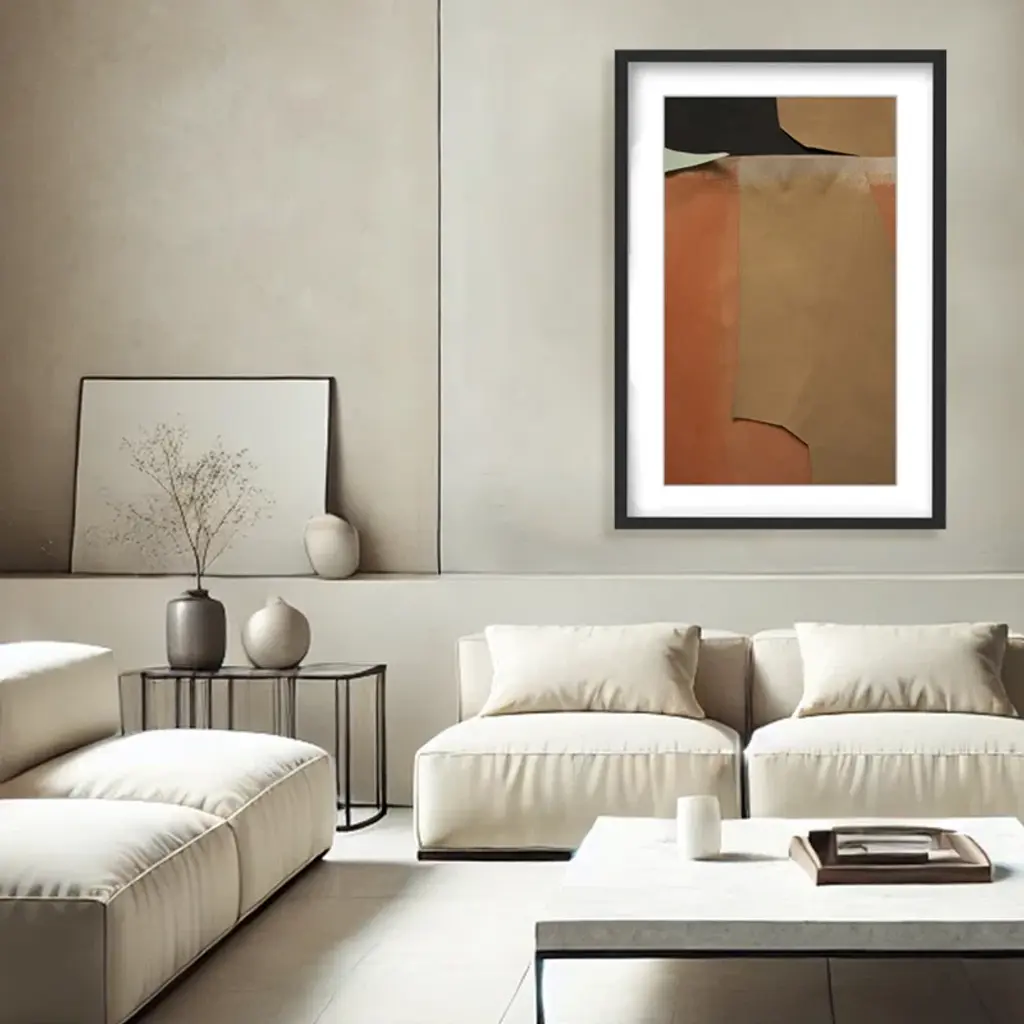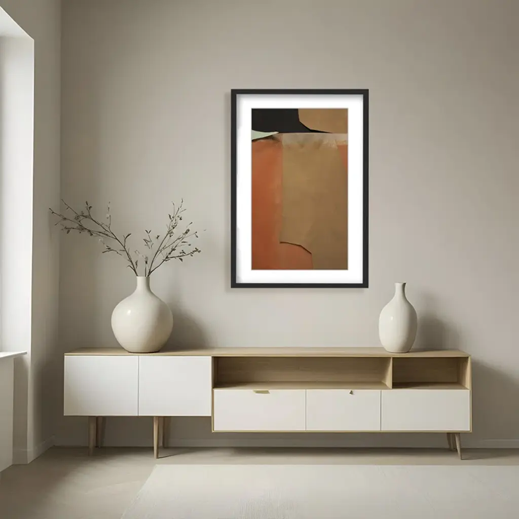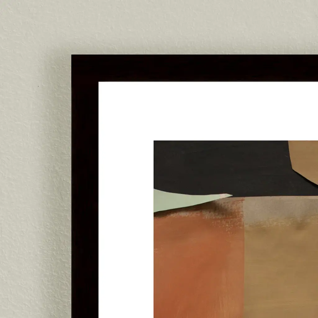 Indulge in the luxurious beauty of 'Gai: A Symphony of Abstraction'. This exquisite piece is presented on a framed matted print, complemented by a black frame. It is the perfect addition to elevate any room's aesthetic.