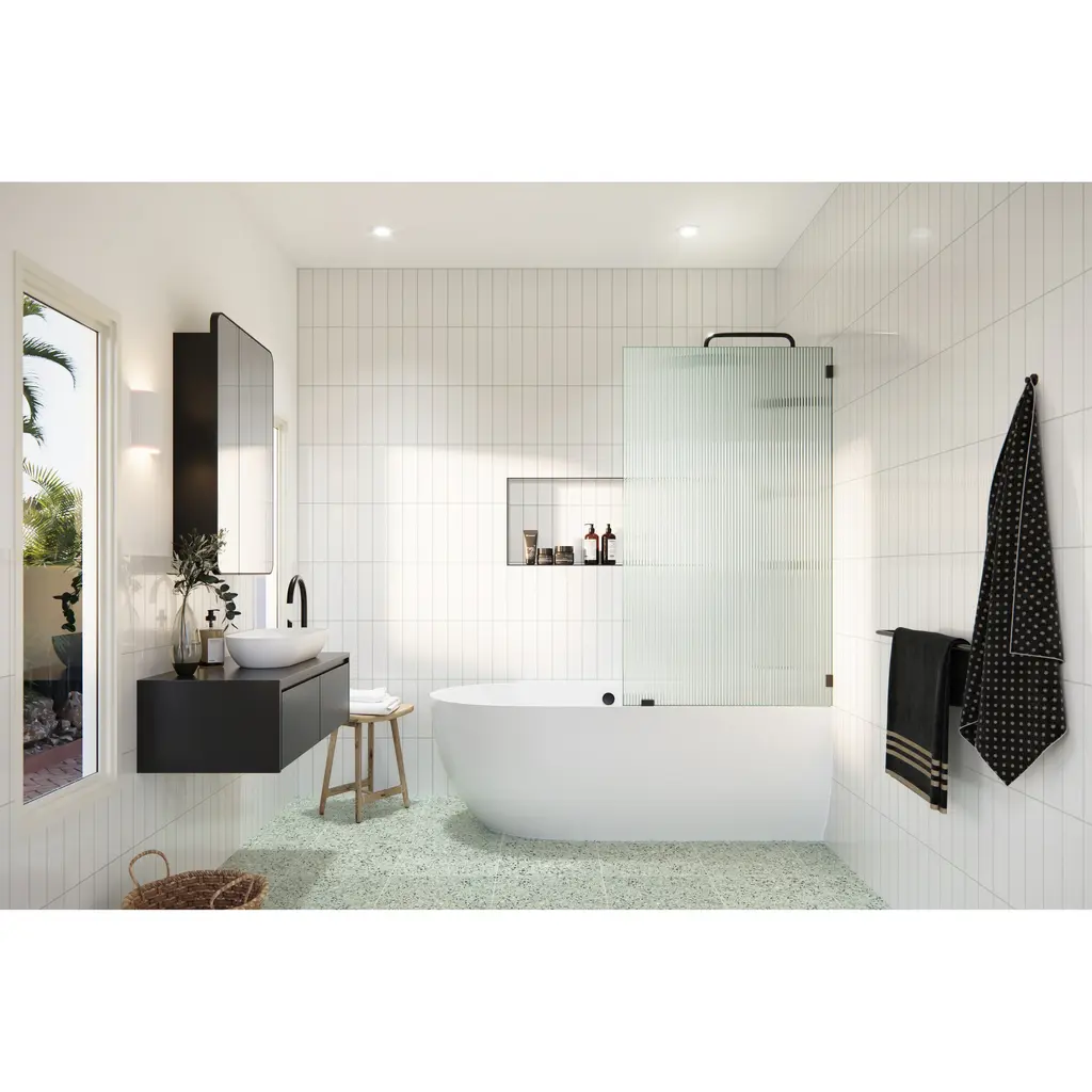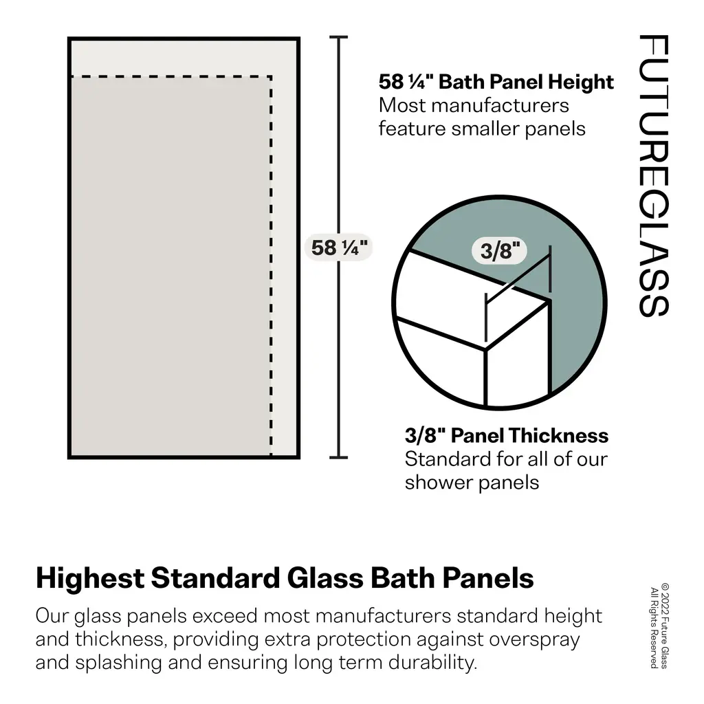 Gaia 30 In. X 58.25 In. Single Fixed Frameless Fluted Frosted Bath Panel Shower Tub Door - Polished Chrome