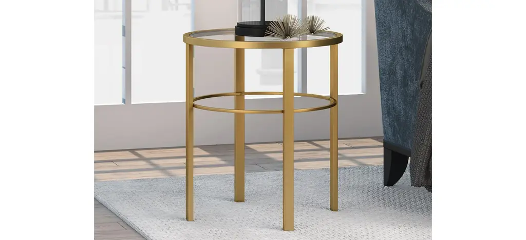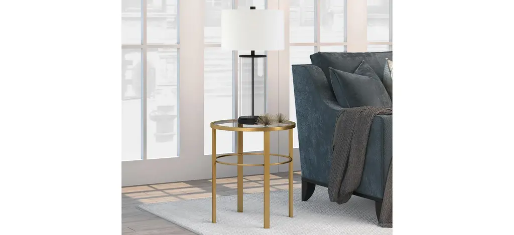 This industrial display box styled side table features a seamless blend of function and design. Easy to assemble and easy to style, the tempered glass top, metal shelf and blackened bronze finish make it the perfect addition to your living room or den ensemble.