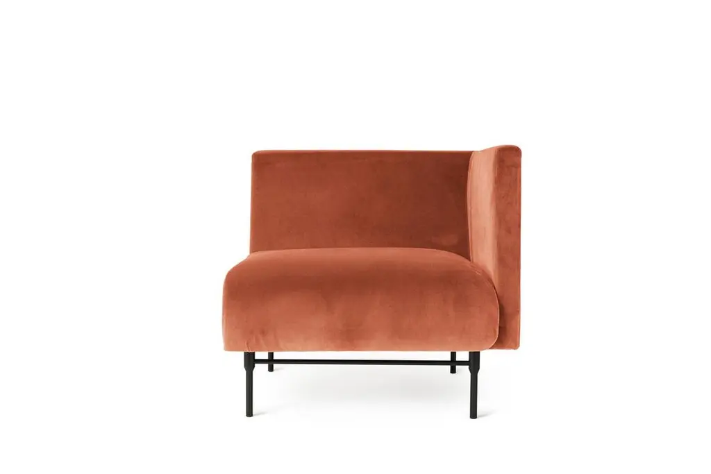 Galore seater module right vintage rose by Warm NordicDimensions: D82 x W83 x H 76 cm.Material: textile upholstery, powder coated black steel legs, wooden frame, foam, spring system.Weight: 31 kg.Also available in different colours and finishes. Warm Nordic is an ambitious design brand anchored in Nordic design history and with a timeless, aesthetic style that inspires you to appreciate the little things in life. The company is the result of several years’ intense work on developing a new design brand with design history, quality and personality at its core. Warm Nordic boasts a colourful and charming universe of furniture, lamps and accessories full of personality. Our designs encapsulate the Nordic spirit, which in its essence is timeless, inclusive and warm.