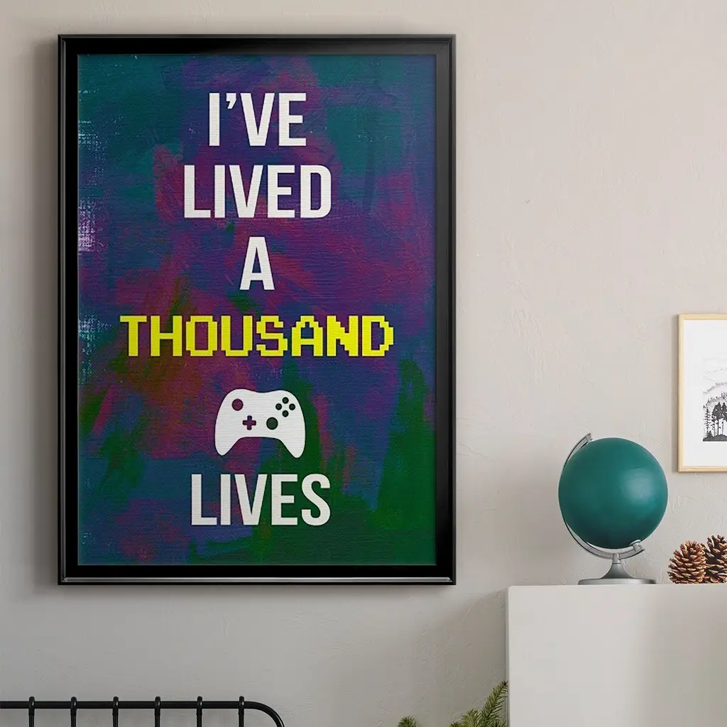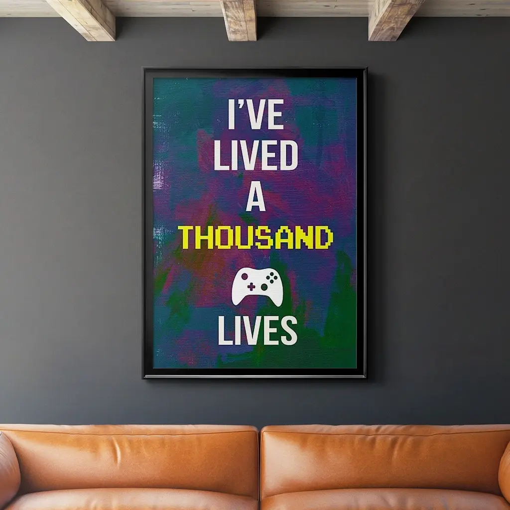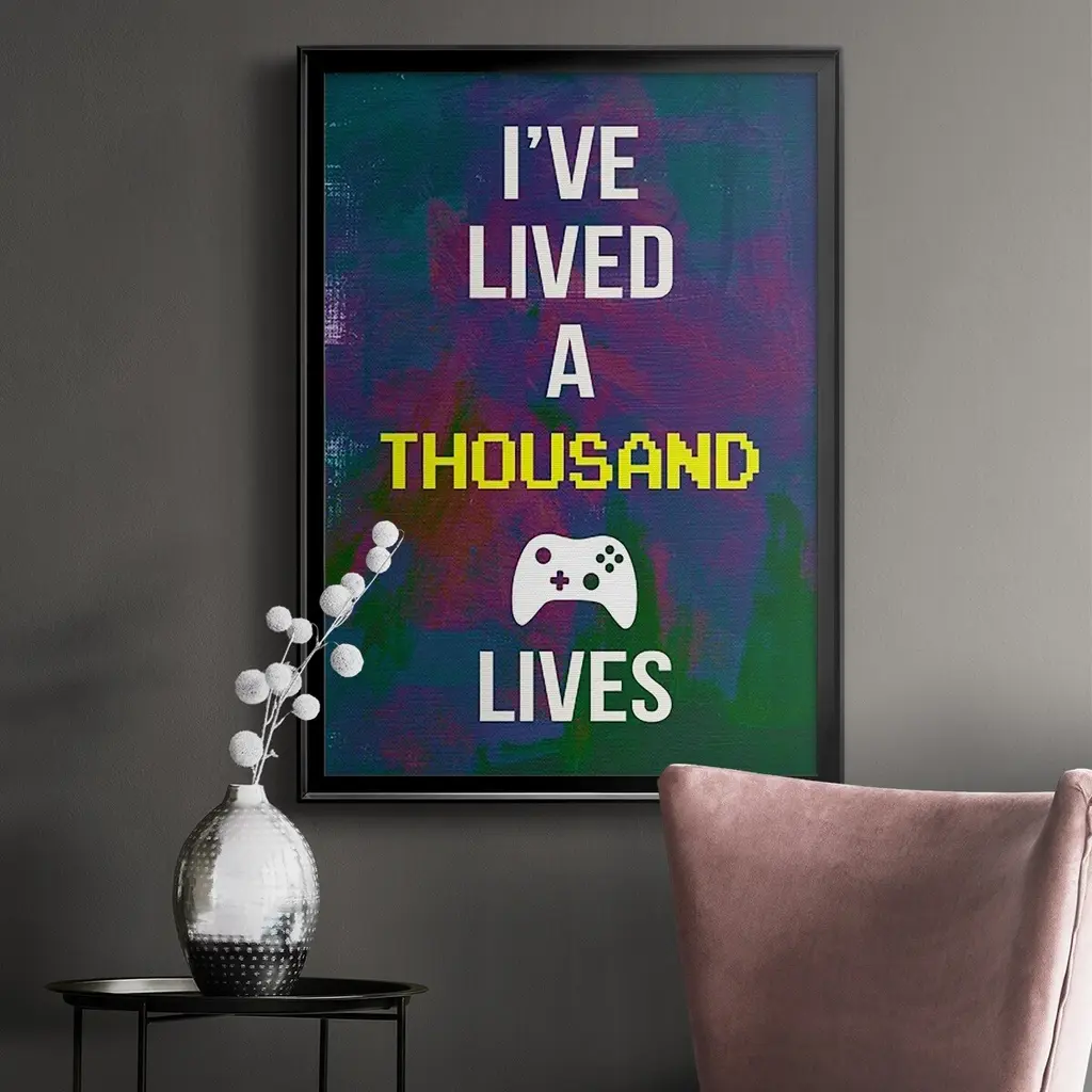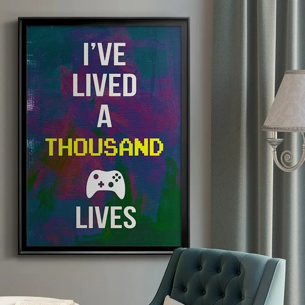 Gamer at Play I Premium Framed Print - Ready to Hang A Premium Framed Print created to last. Framed in distressed wood and available in an array of sizes and colors Featuring a beveled a solid wood stretcher bar, each piece comes ready to hand 4 SIZES AVAILABLE 30.5''X42.5'' - Overall Size 26.5'X36.5'' - Overall Size 22.5''x30.5'' - Overall Size 18.5''x24.5'' - Overall Size Each piece is made to order. Each piece comes with hanging hardware. Made in the USA Ready to Hang