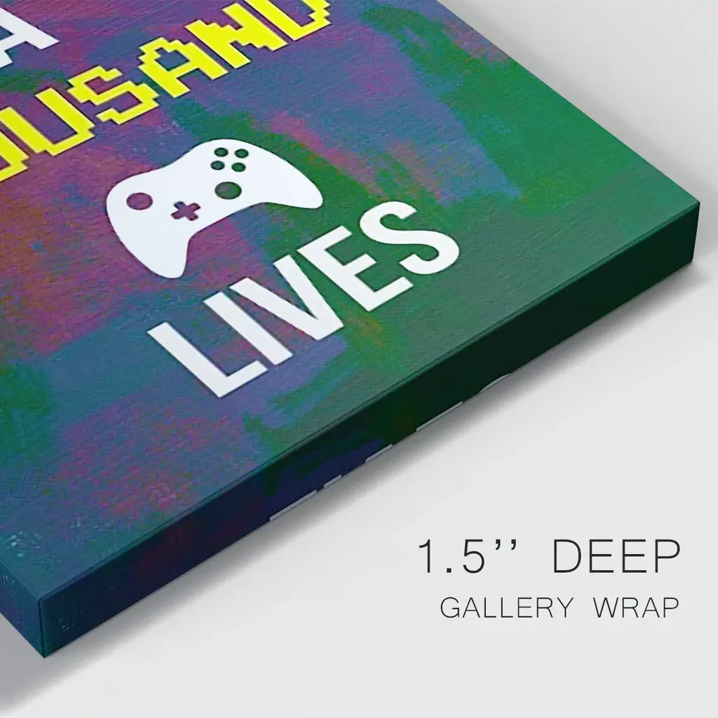 Gamer at Play I Premium Gallery Wrapped Canvas - Ready to Hang A premium hand stretched gallery wrapped canvas print created to last. Featuring a beveled a solid wood stretcher bar, each piece comes ready to hand 6 SIZES AVAILABLE 8''X12'' - Overall Size 12''X18'' - Overall Size 18''X27'' - Overall Size 24''x36'' - Overall Size 32''x48'' - Overall Size 40''x60'' - Overall Size Each piece is made to order. Built to Last Each piece comes ready to hang Solid wood stretcher Fade and Water resistant Made domestically