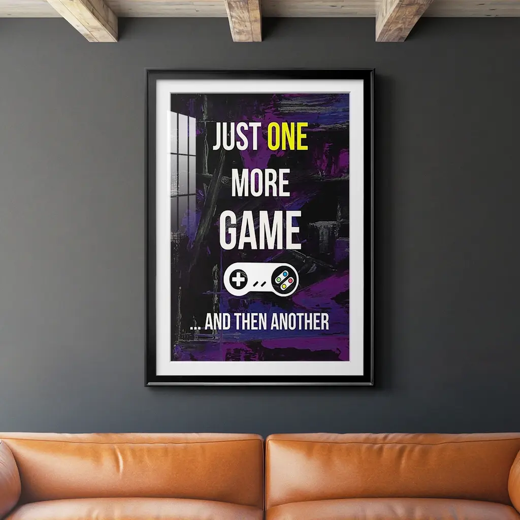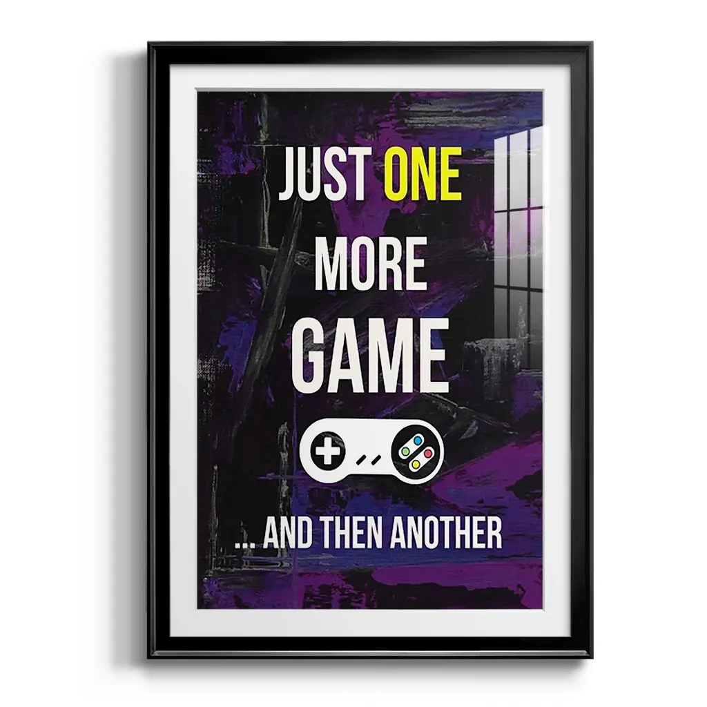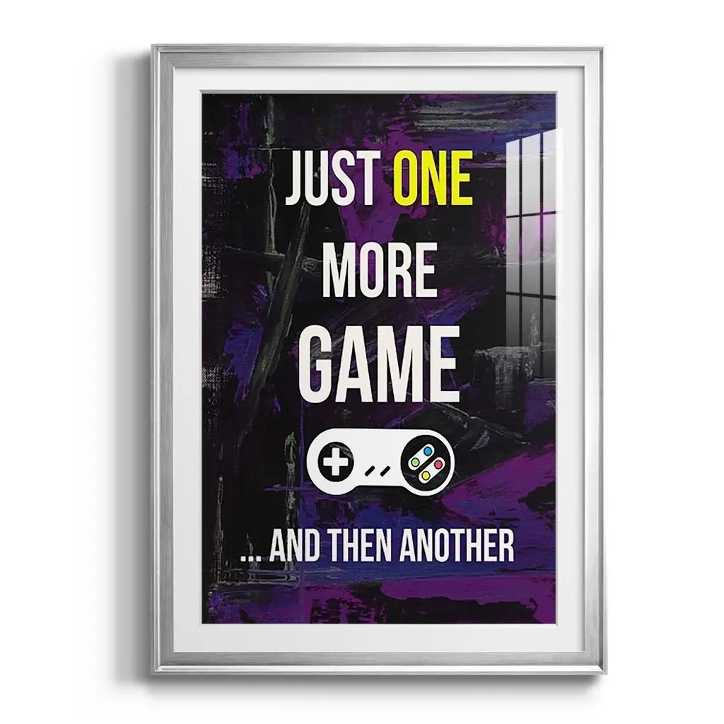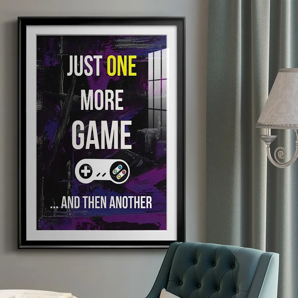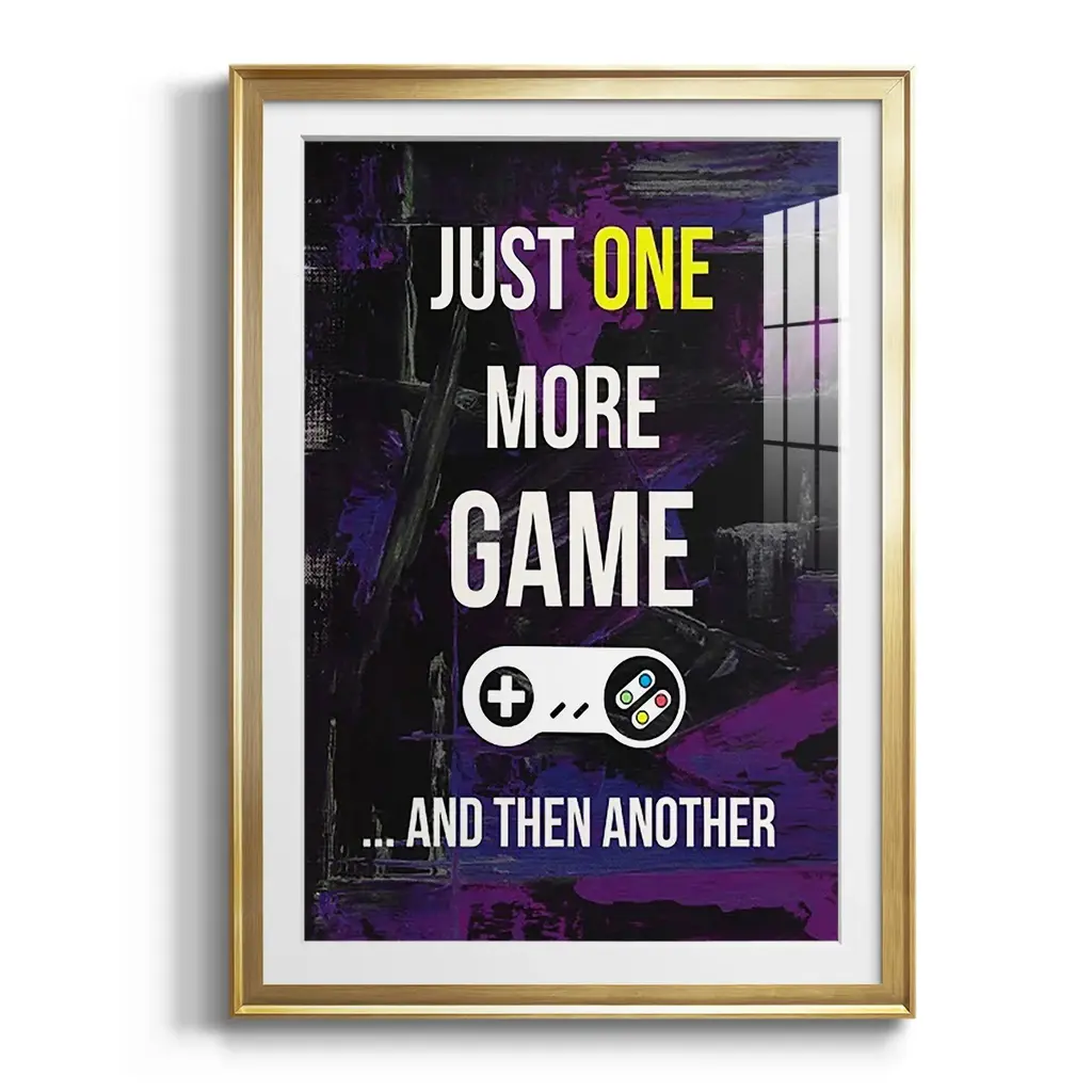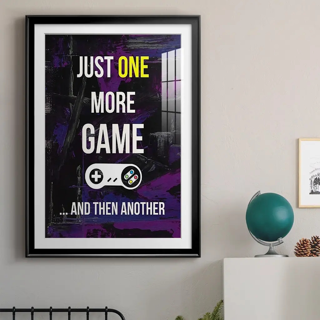 Gamer at Play II Premium Framed Print - Ready to Hang A Premium Framed Print created to last. Framed in distressed wood and available in an array of sizes and colors Featuring a beveled a solid wood stretcher bar, each piece comes ready to hand 4 SIZES AVAILABLE 30.5''X42.5'' - Overall Size 26.5'X36.5'' - Overall Size 22.5''x30.5'' - Overall Size 18.5''x24.5'' - Overall Size Each piece is made to order. Each piece comes with hanging hardware. Made in the USA Ready to Hang Giclee Paper Print Acrylic Glass Beveled Matt Board