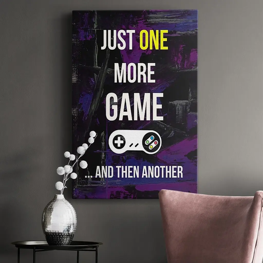 Gamer at Play II Premium Gallery Wrapped Canvas - Ready to Hang A premium hand stretched gallery wrapped canvas print created to last. Featuring a beveled a solid wood stretcher bar, each piece comes ready to hand 6 SIZES AVAILABLE 8''X12'' - Overall Size 12''X18'' - Overall Size 18''X27'' - Overall Size 24''x36'' - Overall Size 32''x48'' - Overall Size 40''x60'' - Overall Size Each piece is made to order. Built to Last Each piece comes ready to hang Solid wood stretcher Fade and Water resistant Made domestically