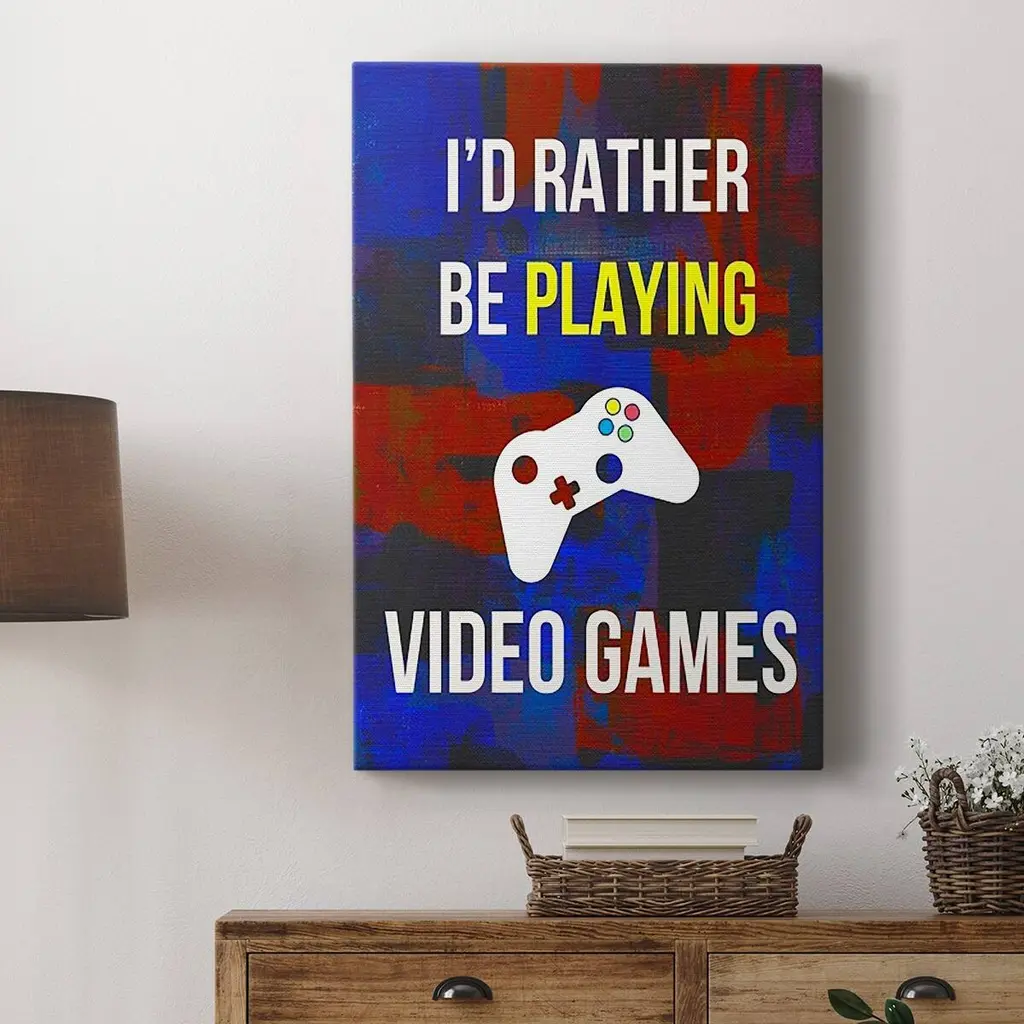 Gamer at Play III Premium Gallery Wrapped Canvas - Ready to Hang A premium hand stretched gallery wrapped canvas print created to last. Featuring a beveled a solid wood stretcher bar, each piece comes ready to hand 6 SIZES AVAILABLE 8''X12'' - Overall Size 12''X18'' - Overall Size 18''X27'' - Overall Size 24''x36'' - Overall Size 32''x48'' - Overall Size 40''x60'' - Overall Size Each piece is made to order. Built to Last Each piece comes ready to hang Solid wood stretcher Fade and Water resistant Made domestically