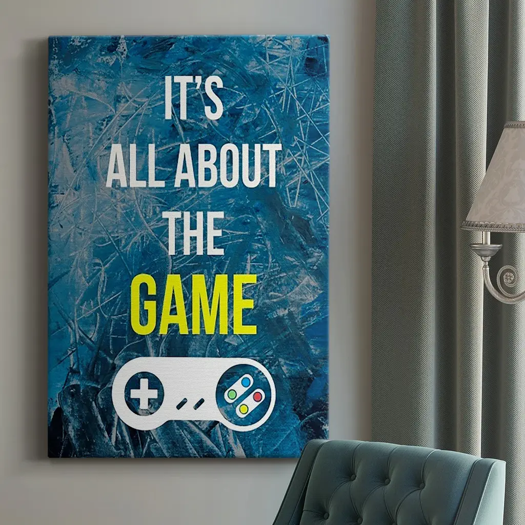 Gamer at Play IV Premium Gallery Wrapped Canvas - Ready to Hang A premium hand stretched gallery wrapped canvas print created to last. Featuring a beveled a solid wood stretcher bar, each piece comes ready to hand 6 SIZES AVAILABLE 8''X12'' - Overall Size 12''X18'' - Overall Size 18''X27'' - Overall Size 24''x36'' - Overall Size 32''x48'' - Overall Size 40''x60'' - Overall Size Each piece is made to order. Built to Last Each piece comes ready to hang Solid wood stretcher Fade and Water resistant Made domestically