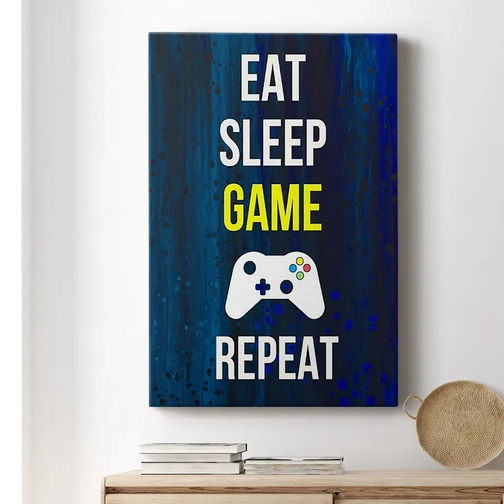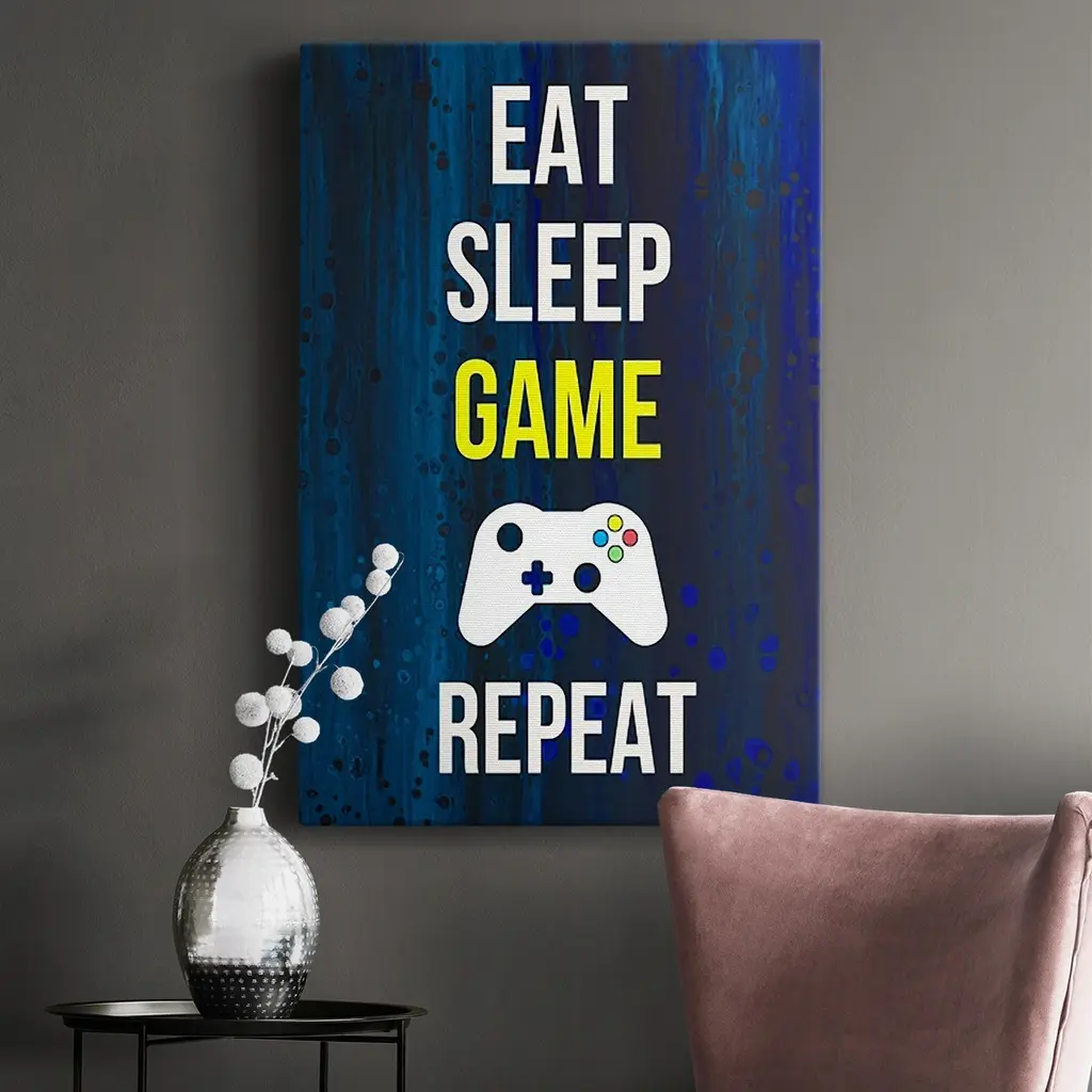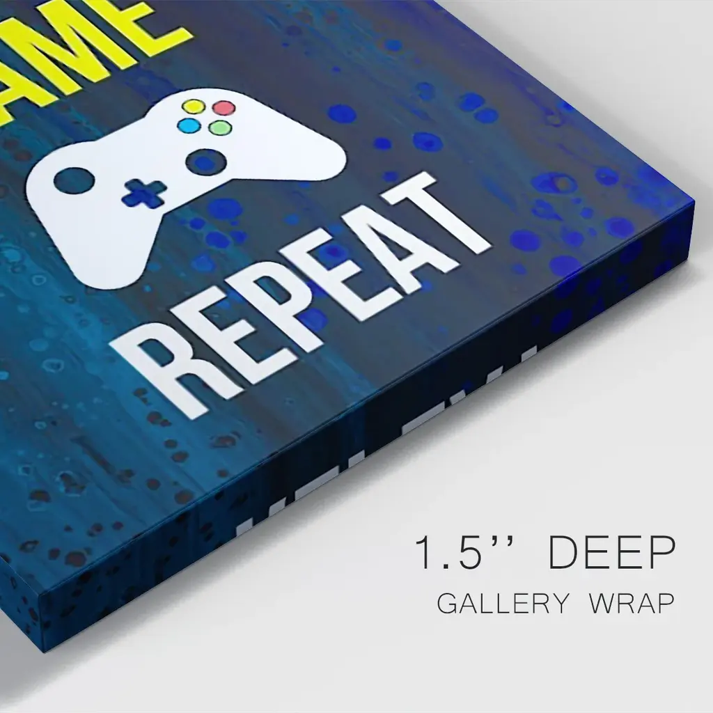 Gamer at Play V Premium Gallery Wrapped Canvas - Ready to Hang A premium hand stretched gallery wrapped canvas print created to last. Featuring a beveled a solid wood stretcher bar, each piece comes ready to hand 6 SIZES AVAILABLE 8''X12'' - Overall Size 12''X18'' - Overall Size 18''X27'' - Overall Size 24''x36'' - Overall Size 32''x48'' - Overall Size 40''x60'' - Overall Size Each piece is made to order. Built to Last Each piece comes ready to hang Solid wood stretcher Fade and Water resistant Made domestically