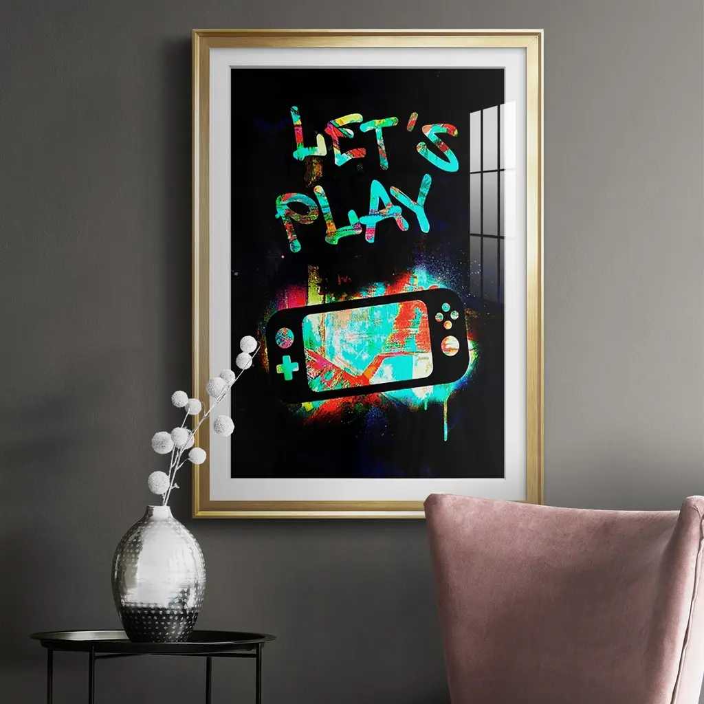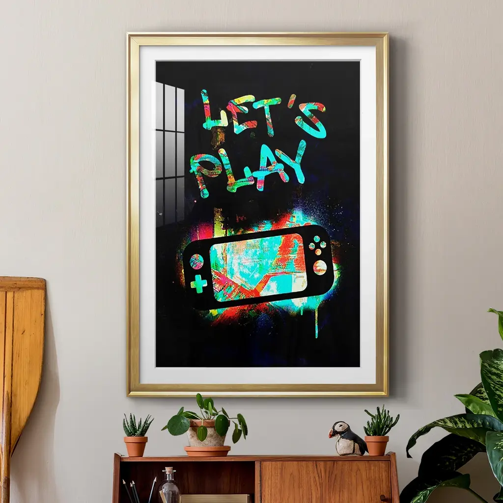 Gamer Tag III Premium Framed Print - Ready to Hang A Premium Framed Print created to last. Framed in distressed wood and available in an array of sizes and colors Featuring a beveled a solid wood stretcher bar, each piece comes ready to hand 4 SIZES AVAILABLE 30.5''X42.5'' - Overall Size 26.5'X36.5'' - Overall Size 22.5''x30.5'' - Overall Size 18.5''x24.5'' - Overall Size Each piece is made to order. Each piece comes with hanging hardware. Made in the USA Ready to Hang Giclee Paper Print Acrylic Glass Beveled Matt Board