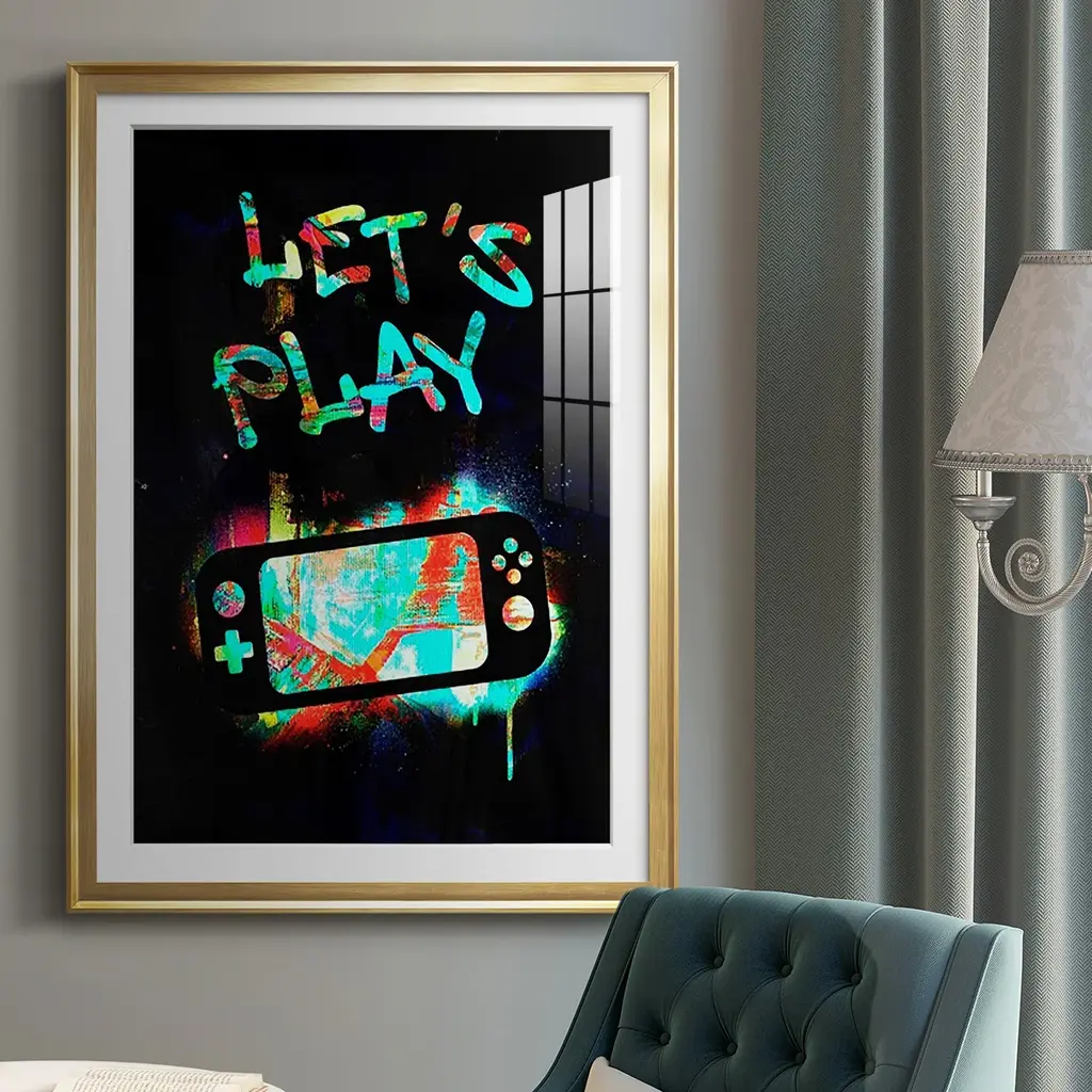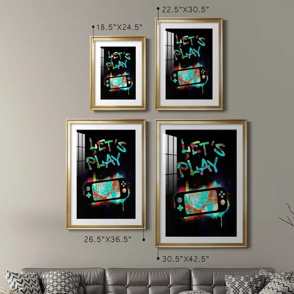 Gamer Tag III Premium Framed Print - Ready to Hang A Premium Framed Print created to last. Framed in distressed wood and available in an array of sizes and colors Featuring a beveled a solid wood stretcher bar, each piece comes ready to hand 4 SIZES AVAILABLE 30.5''X42.5'' - Overall Size 26.5'X36.5'' - Overall Size 22.5''x30.5'' - Overall Size 18.5''x24.5'' - Overall Size Each piece is made to order. Each piece comes with hanging hardware. Made in the USA Ready to Hang Giclee Paper Print Acrylic Glass Beveled Matt Board
