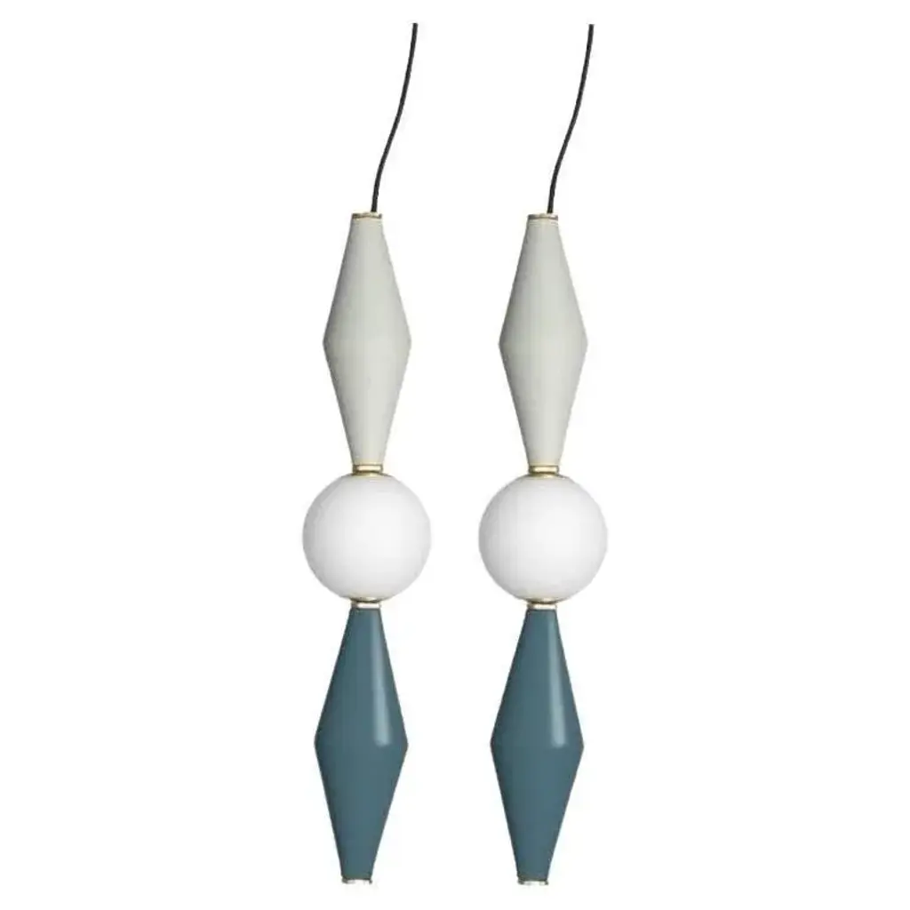 Pair of Gamma D lamp by Mason Editions Dimensions: 12 × 12 × 37 cm Materials: aluminum and blown opal white glass Colours: pink, burgundy, light grey, sage green, petrol green, black; grey/petrol green, grey/sage green, grey/pink, burgundy/pink, sage green/petrol green. Up to 250V (Europe/UK Standard).