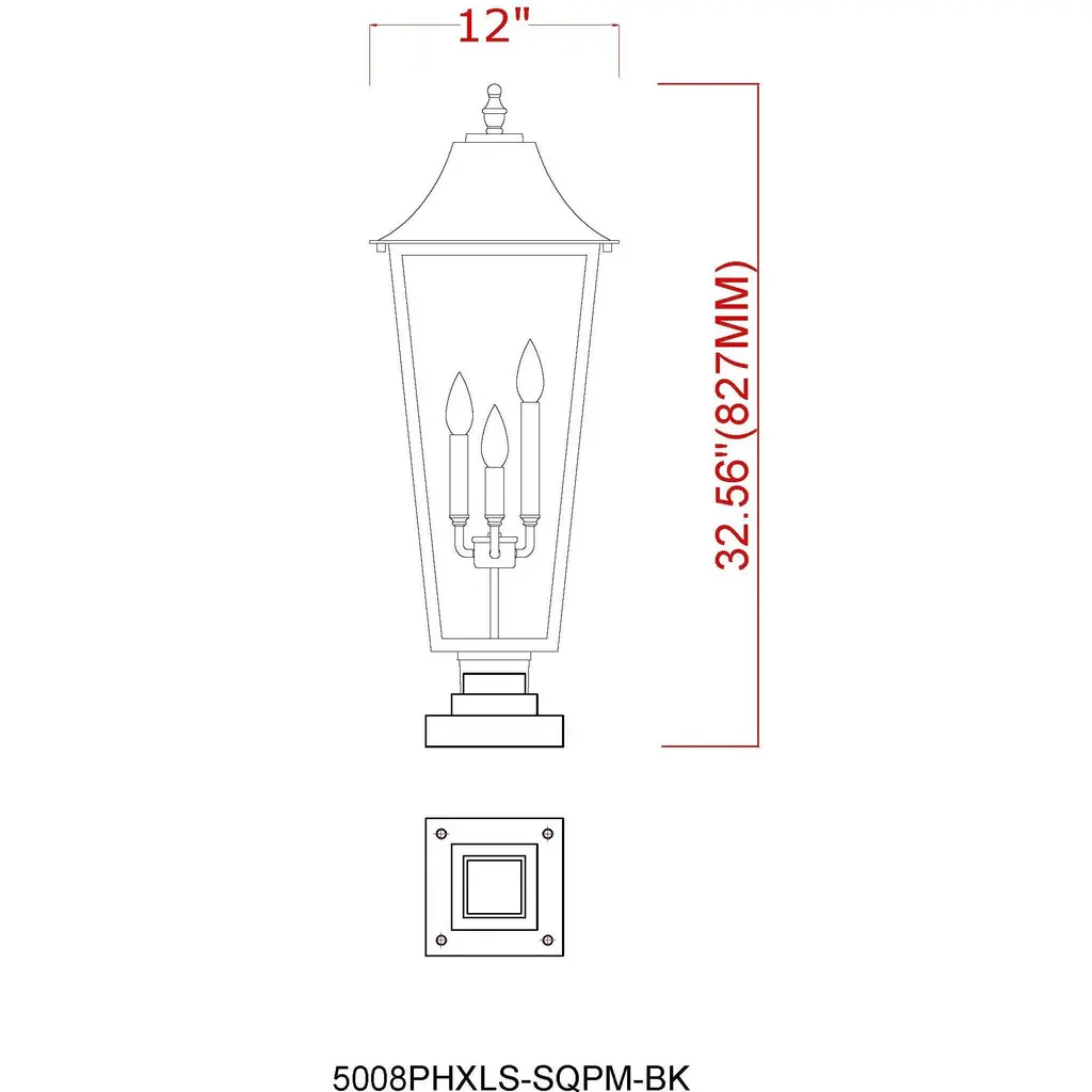 Gannon 3 Light 32.5 Inch Black Outdoor Pier Mounted Fixture In G9