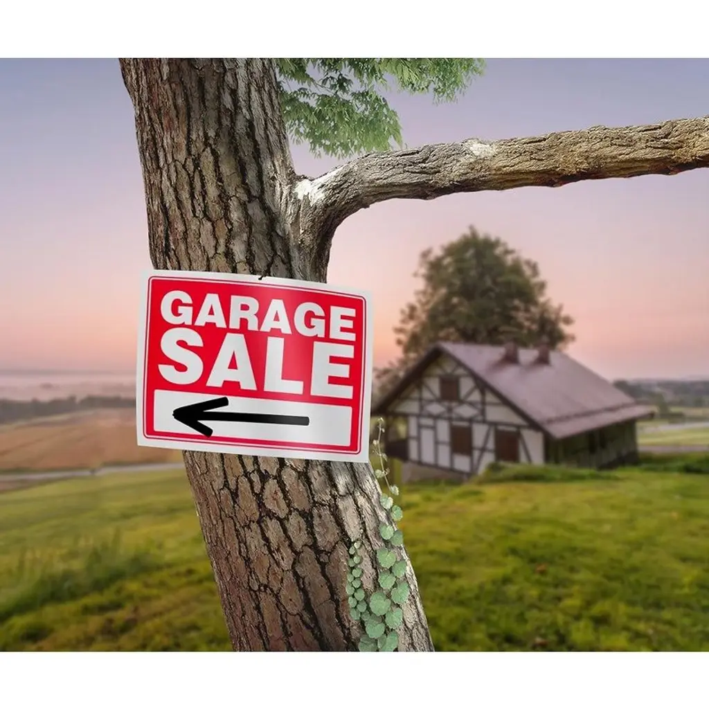 Garage Sale Sign Red Yard Sales Street Signs By Ram-pro - 9 X 12 Inch Plastic Banner Labels For Winter, Christmas, Holiday Sale Events