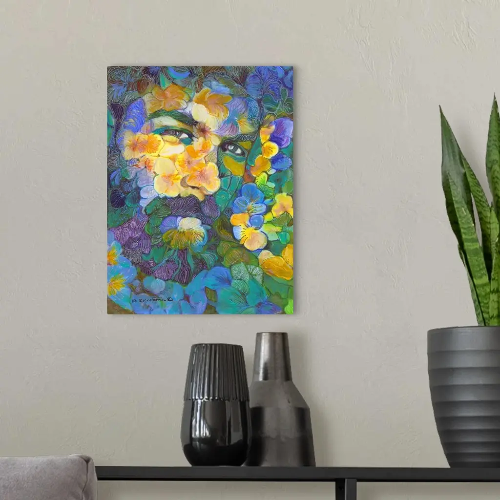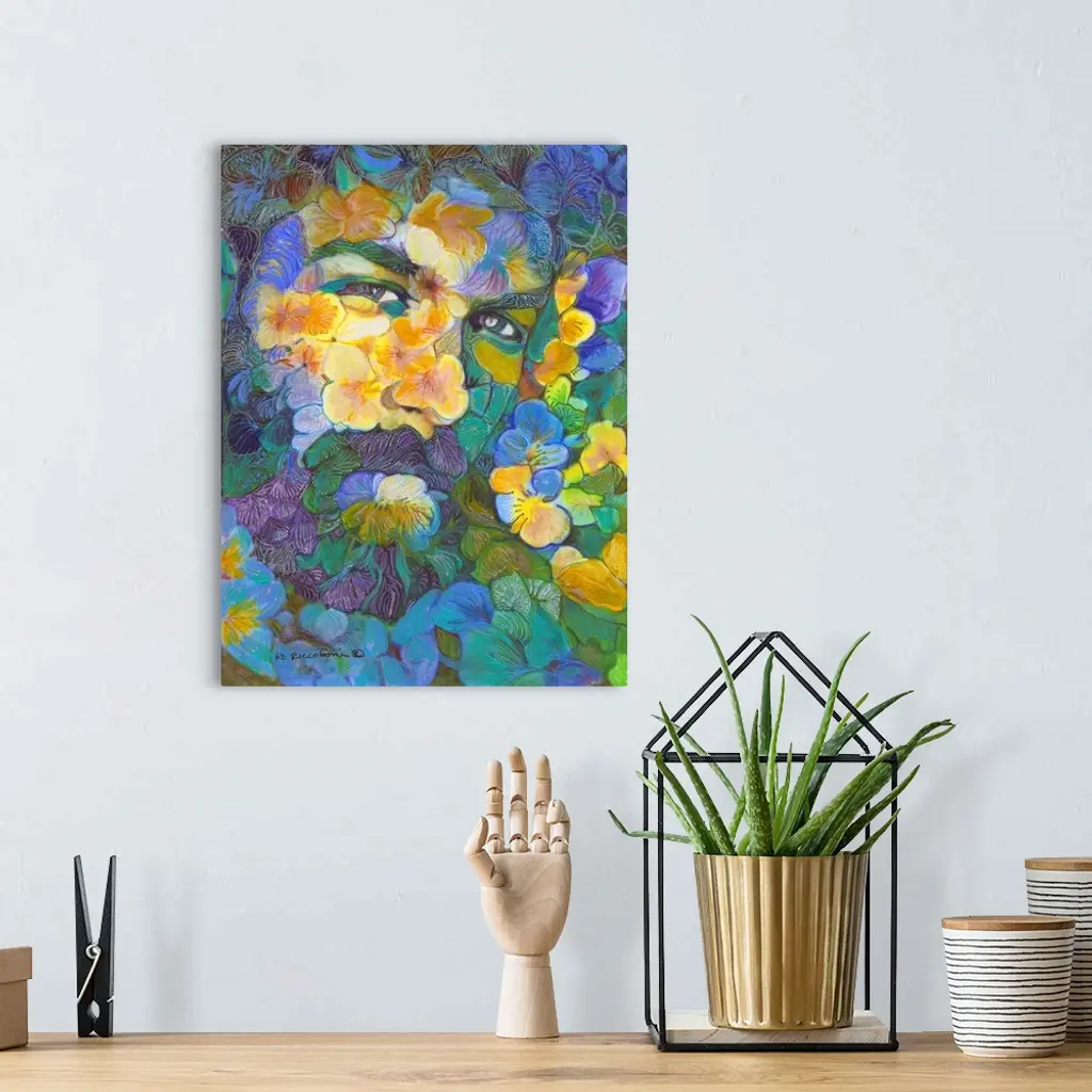 Handsome Bearded Garden Flower Bear by RD Riccoboni. From the artist's surrealist Flower Bear series of sensual men painted in a floral and flower motif.