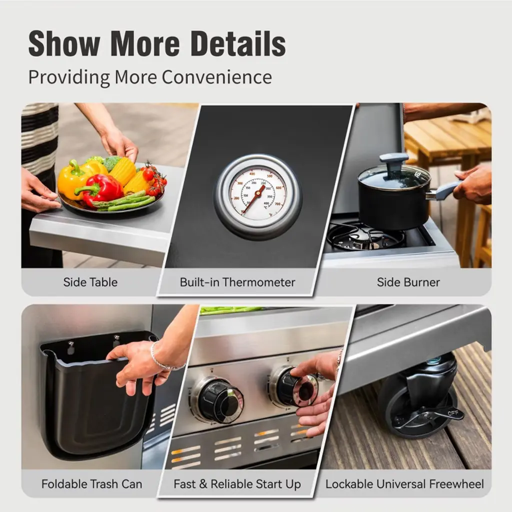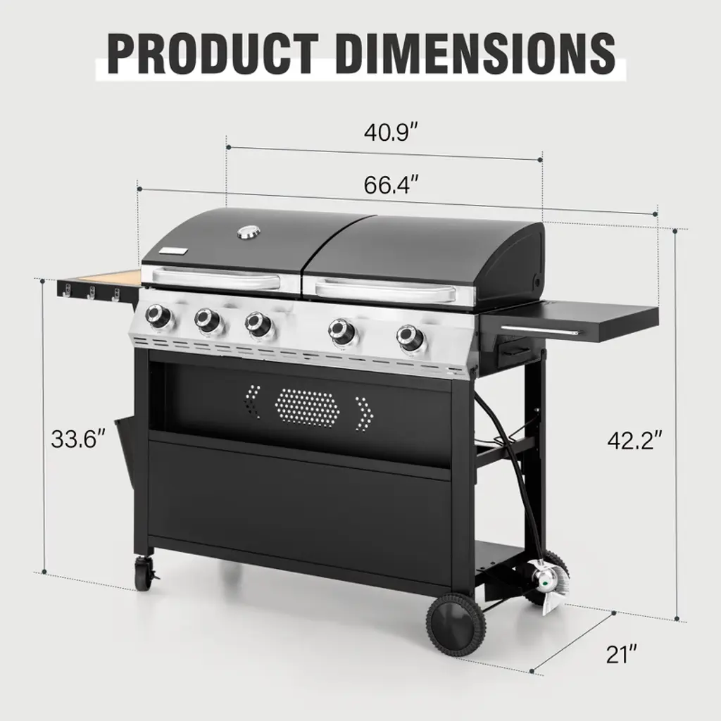Garden Grotto Propane Gas Griddle Grill Combo With Enameled Cast Iron – 696 Sqin Cooking Area