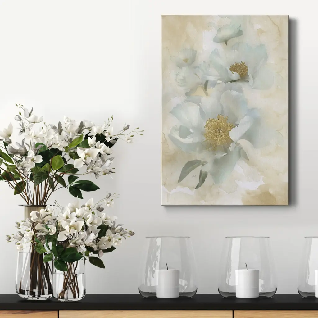 Garden Peony Neutral Crop Gallery Wrapped Canvas
