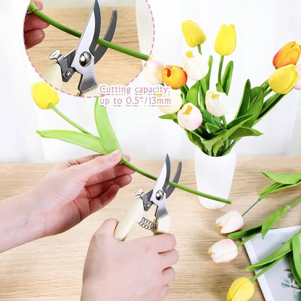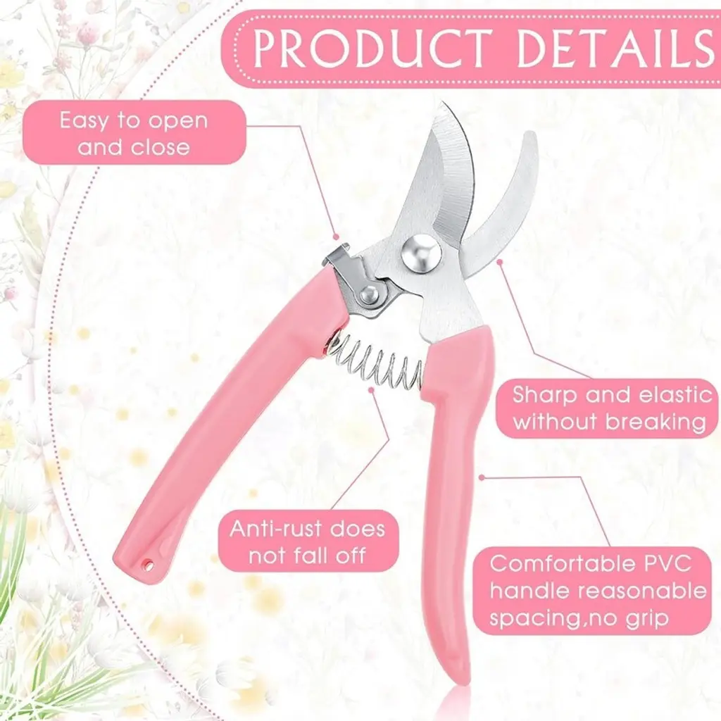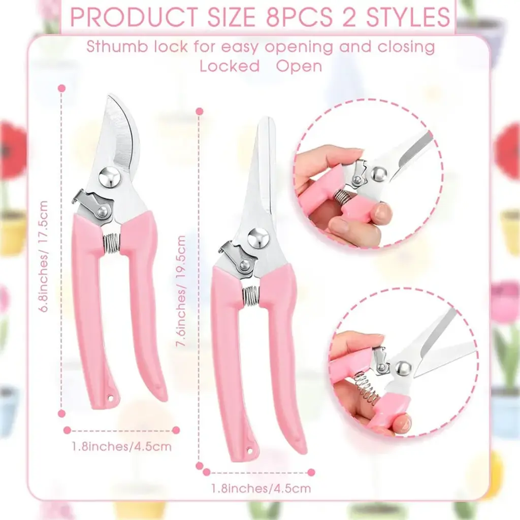Abundant in Quantity: you can get 8 pieces of shears gardening tools designed in 4 colors, including pink, light green, light blue and beige, each color comes with 1 bypass blade pruner and 1 straight blade scissor, sufficient quantity and variety of colors can meet your use and replacement needs; You can also share some with your friends and family Easy Pruning: the gardening shears are designed with comfortable handles, which makes them applicable for both men and women; The spring between the handles can help you trim for your plants with less effort; Sturdy and sharp scissors blades can easily cut through stems, branches and roots without damaging themselves Reasonable and Ergonomic Design: our hand pruners adopt stainless steel blades and comfy PVC handles; The ergonomic notched handles adopt non slip design, which allows you to grip easily, bringing you a comfortable and pleasant use experience; The soft coated handles can reduce hand pain and soreness caused by holding scissors for too long time Convenient Maintenance: the bonsai scissors are convenient to maintain and flexible to use, you can use a cloth dampened with a small amount of oil to wipe off the leaves and sludge, to keep the surface of the scissors smooth; Lock the plant trimming scissors when not in use, which not only facilitates storage, but also reduces the risk of accidental scratches Multifunctional Horticultural Scissors: the plant scissors with different functions are practical and classic gardening tools for gardeners, florists and gardening lovers, can be widely applied for flower arrangement, bonsai pruning, plants trimming, fruit picking and other horticultural work, bringing you a lot of convenience