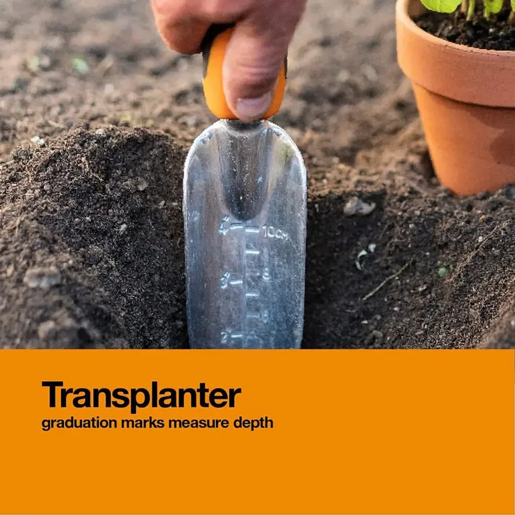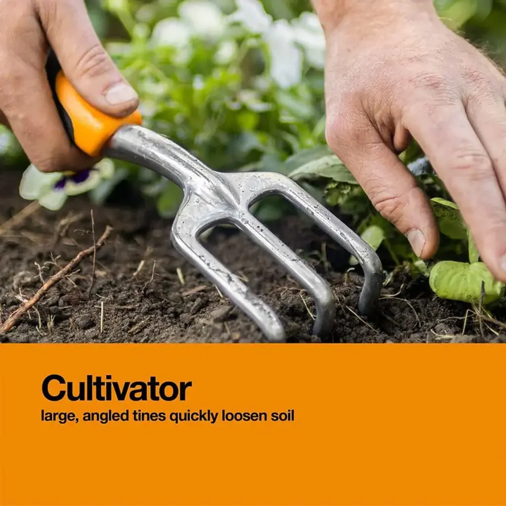 3-IN-1 ESSENTIAL GARDENING SET: Heavy duty, ergonomic hand trowel, transplanter, and cultivator garden tool set; Ideal for a variety of gardening tasks like digging in tough soil, weeding, turning soil, aerating, transplanting, and more to encourage overall plant health and appearance MAXIMUM POWER AND PRECISION: Cast-aluminum heads and tines boost power for digging in tough soil and enhance rust resistance; SoftGrip ergonomic handles allow for more control of each tool and reduce fatigue LONG-LASTING AND RELIABLE: Polished cast-aluminum heads and forked tines stay sharp through heavy use and provide excellent durability for lasting value; hand trowels and garden tools are built to last QUALITY GARDEN TOOLS: Designed to help you cultivate a better garden, garden and yard tools are equipped with smart technologies and award-winning, ergonomic features that make it easier and more enjoyable to transform your outdoor space INCLUDES: Ergo Trowel, Transplanter, and Cultivator.